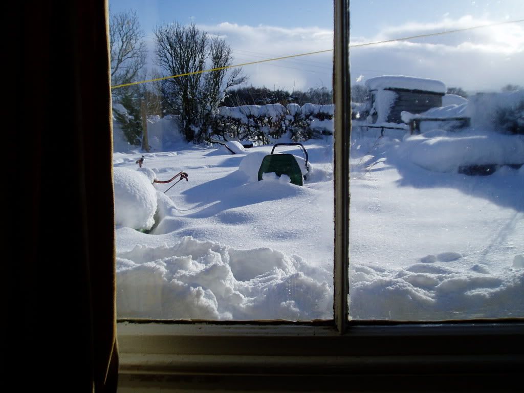OH tried to get me into work, but we turned back. Phoned work and they said don't even try, so they are being great. Managed to stop off at the co-op, honestly it was like the Maire Celeste, empty shelves. No fruit and veg no milk very little in the deli part. Just as I was paying the bread delivery arrived, so managed to bag 4 loaves of bread. Picked up some UHT goats milk so I've decided to make some lasagnes for the freezers. OH is debating whether to go to work, I'll let him decide. Thinks he might make it but not get home. I've given him the phone number of our ex-next door neighbour, who lives in the town and has offered him a bed if needed. After last New Year when he was left to sleep in the van I feel a bit better about him going in.