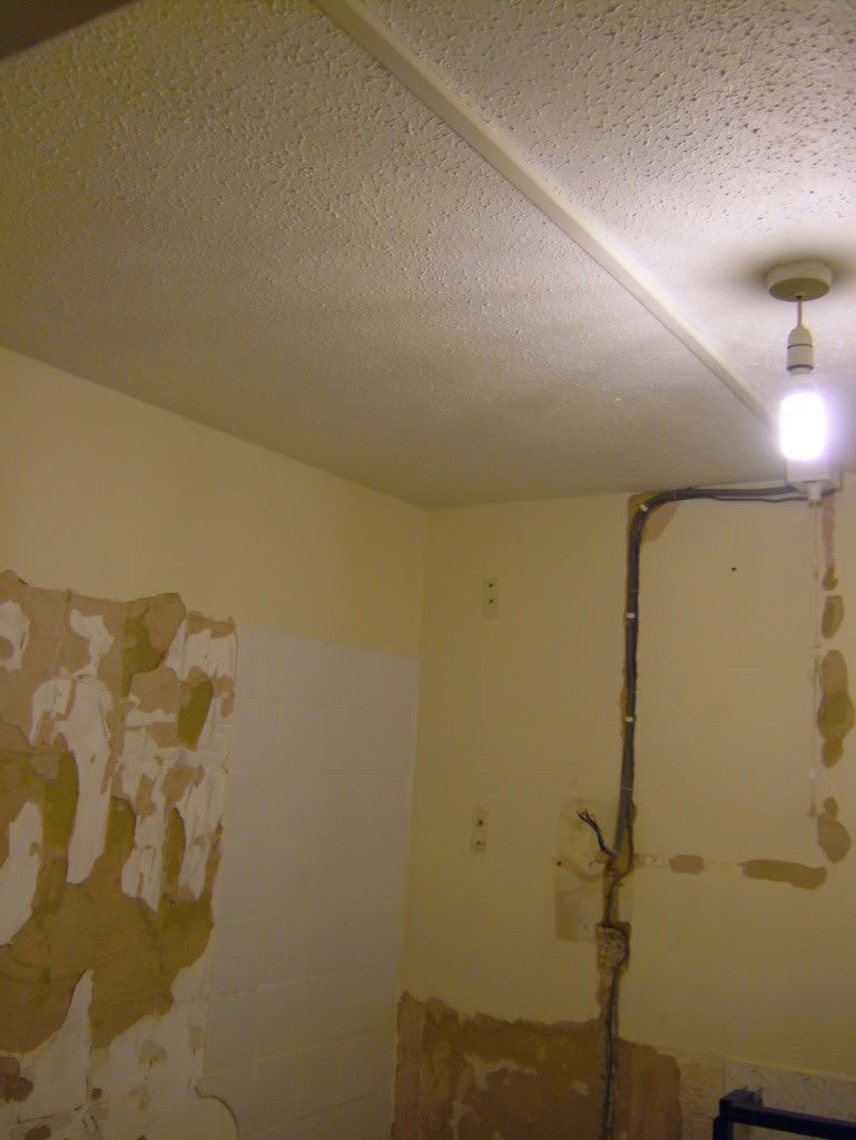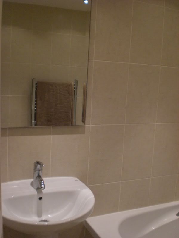 I did a lot of research into getting the bathroom done and sourced and had everything bar adhesive and plasterboard, 2x4 and grout ready. He got 90 % of his money within a week of "completion". As a wedding present my Mum helped out but I asked her to withold payment (he had also just fitted her bathroom and new boiler so a lot of money) until jobs were finished. I also wanted a certificate to prove that the electrical work was perfomed to Part P as is a legal requirement.