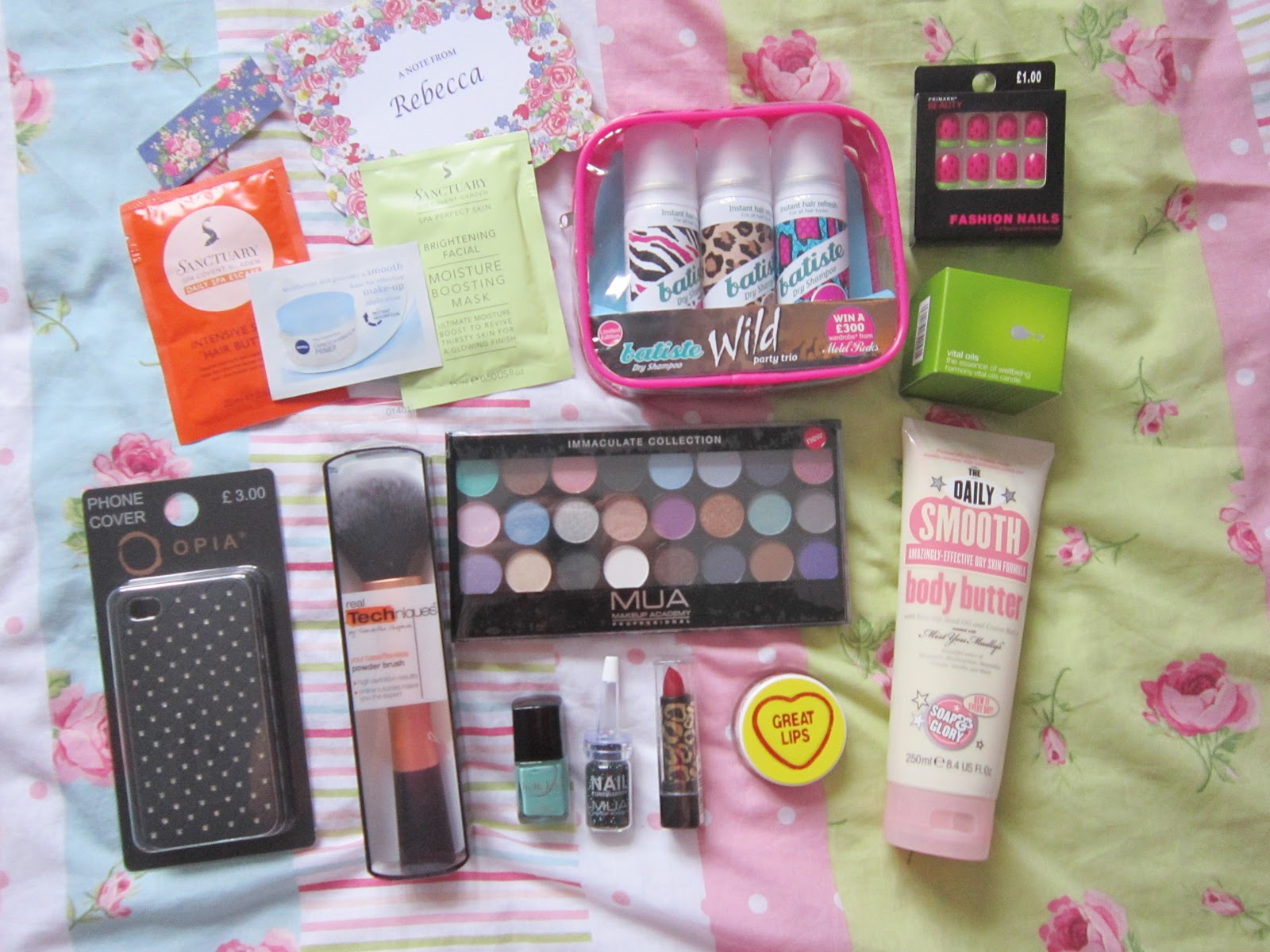 You can see a log of all my wins here, but these are my newest wins:Blog giveaway including a Models Own and China Glaze nail polish, Soap and Glory hand food mini, a Liz Earle Hot Cloth Cleanser mini, Topshop lipstick and moreBalmi lipbalm, Twitter, RRP £5Sienna X self tanning set, Twitter, RRP £40Real suede leather Chelsea boots, Oasis, Twitter, RRP £59Blog giveaway: butter from Soap and Glory, a Real Techniques powder brush, a Batiste set, and a Liz Earle candle and moreBought with £50 voucher, Pinterest competition ran by Kikis BoutiqueUumbrella, Storm London Twitter. RRP £22Facial cleanser, Twitter, RRP £25♥ Blogger at Victoria's Vintage Blog ♥0