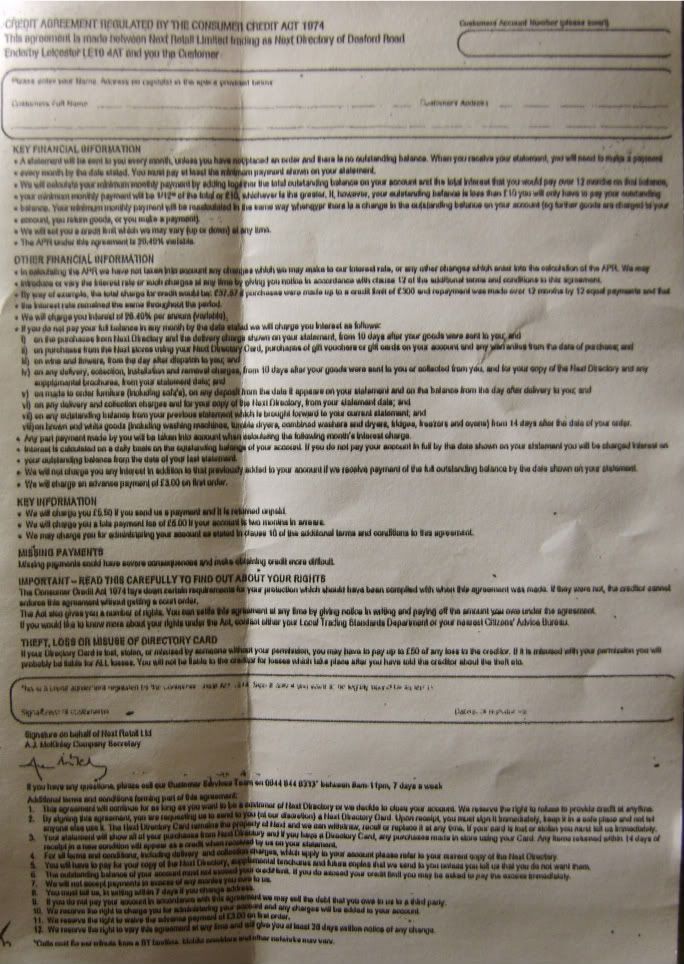 Missing payments could have severe consequences and make obtaining credit more difficult. did not come into force until the amendments of the Consumer Credit (Agreements) Regulations 1983 where introduced on the 31 of may 2005Thats it, i am done, Blind-as-a-Bat has left the forum, for good this time, there is no way I can recover this account, as the password was random, and not recorded, and the email used no longer exits, nor can be recovered to recover the account, goodbye all ………….