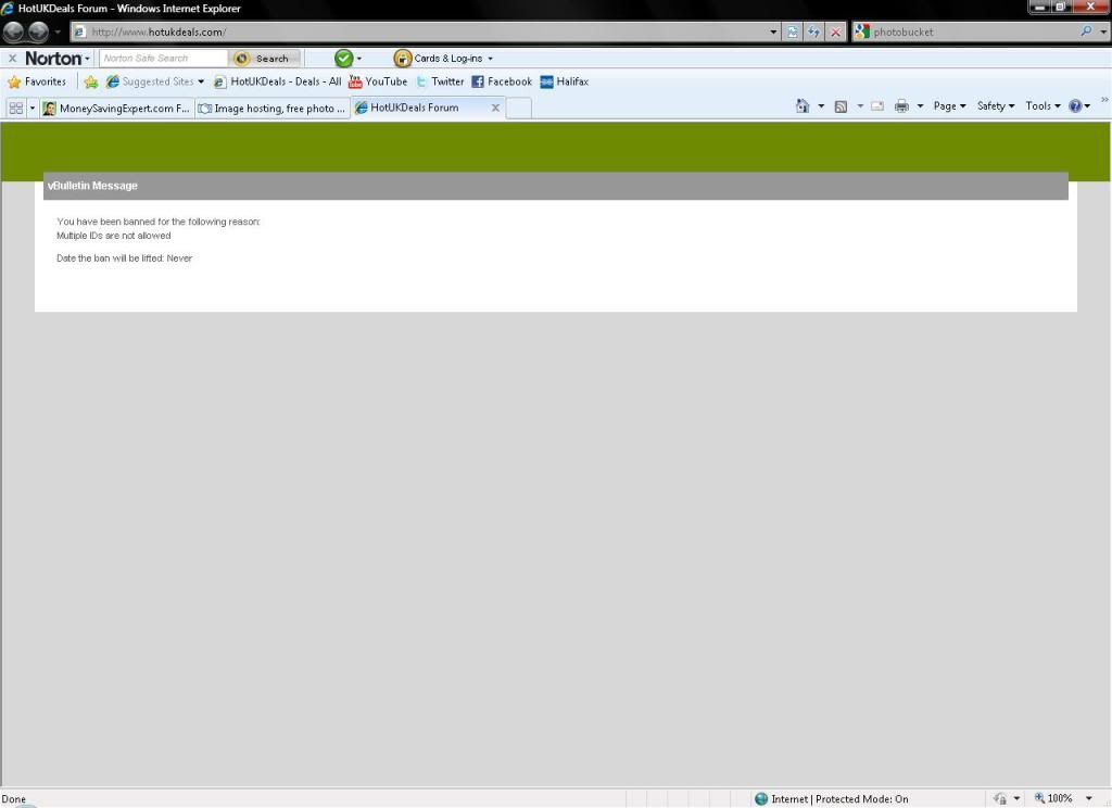 They have banned my I.P address, there is ways around that i.e. change router settings but I'd much rather just get it sorted with a mod. Can't even get on the contact page and my ban is for having "multiple IDs" but I changed my ID as they don't have a feature to change username (which i find wierd)! Thanks to those who are helping :j