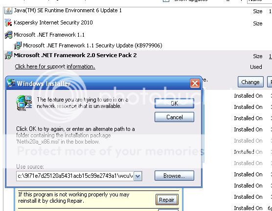 When I checked the control panel it says that SP2 need repair but I do not know how to do this. I have reloaded windows cd and said I need it repair but the SP2 is still saying it need repair. I cannot load Microsoft 2010 that I puchased because of this.