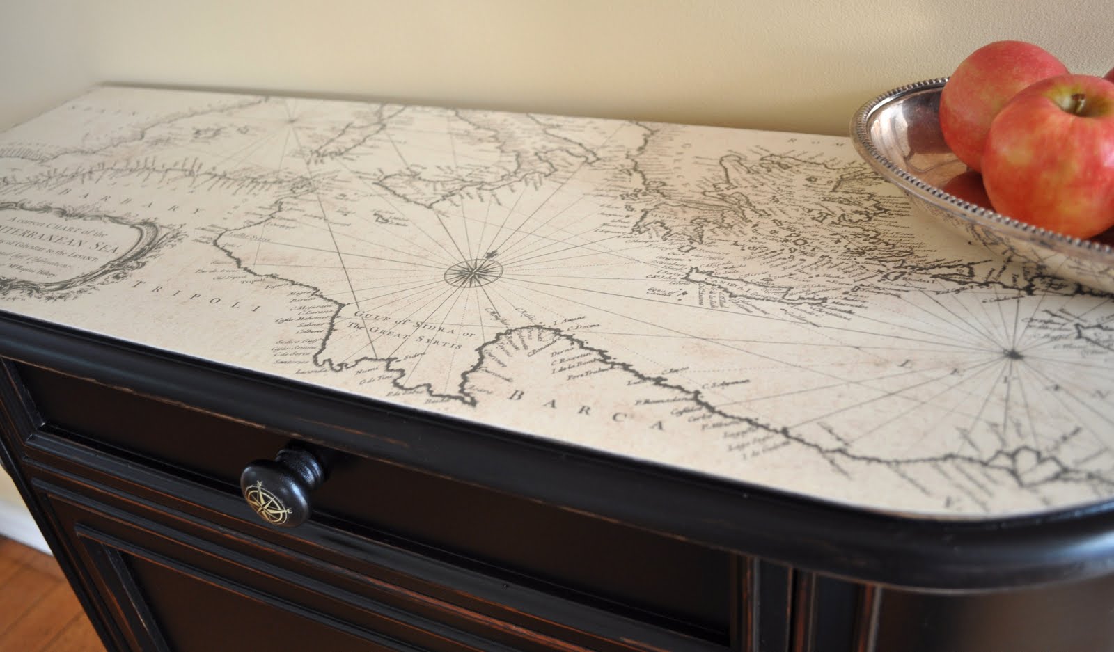 Has anyone ever added a large decopage to a tabletop, i have a lovely old sepia map i wanted to top a sideboard with, Could i stick it on with pva then varnish over once dry ..........does that make sense?