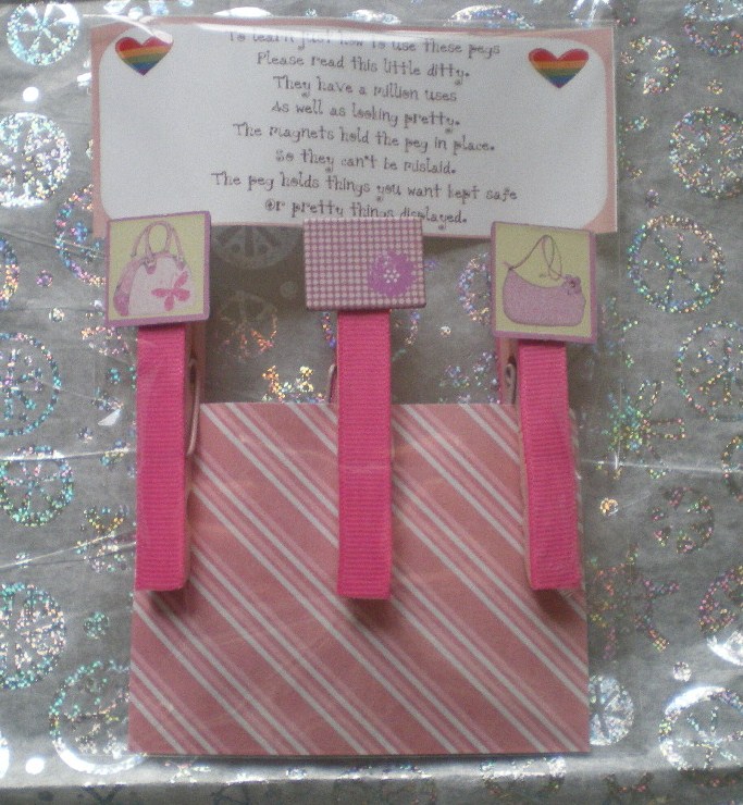 Here are a few magnetic peg clips i have made. Its the first time i have tried them and i'm quite chuffed with how they have turned out.