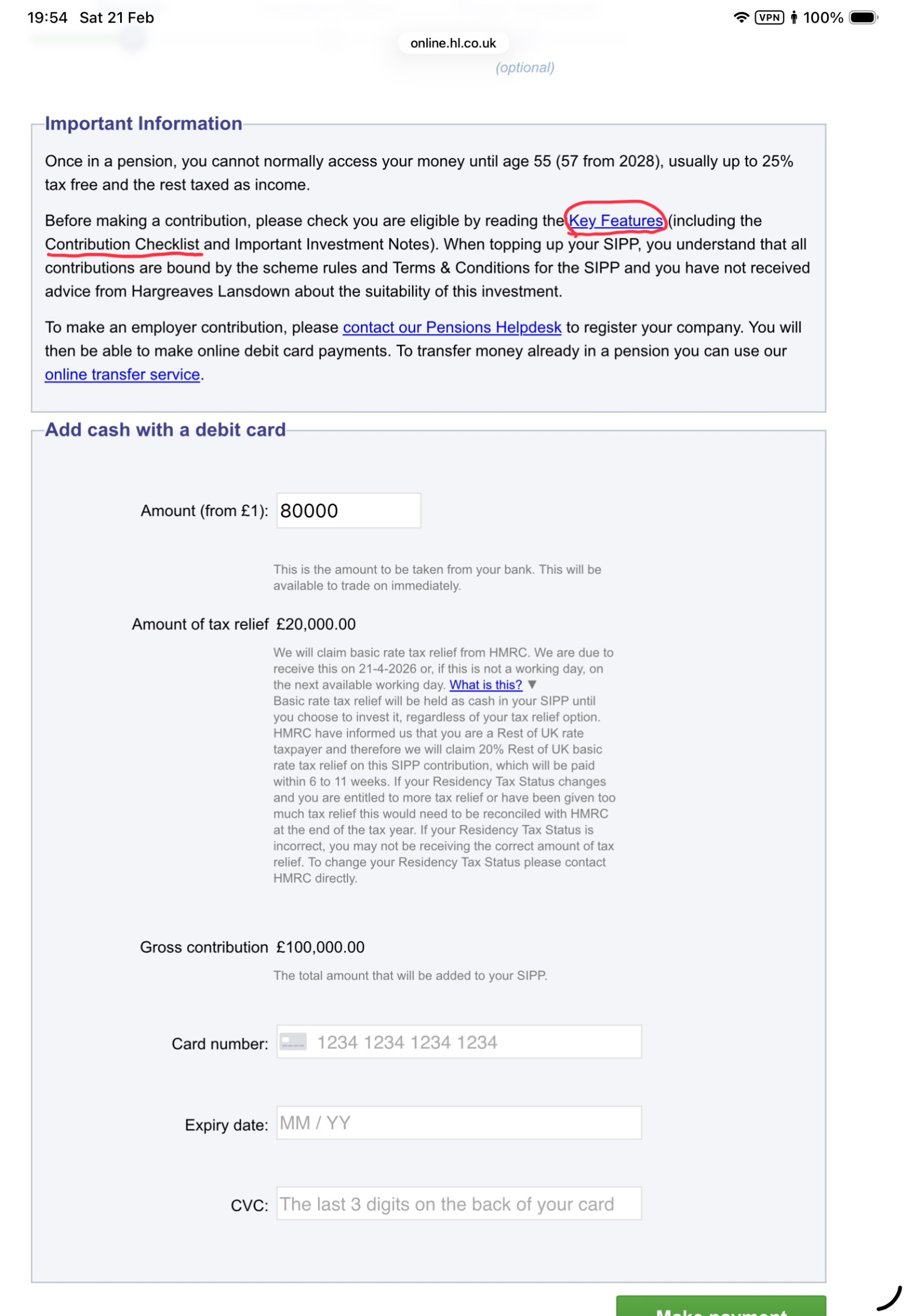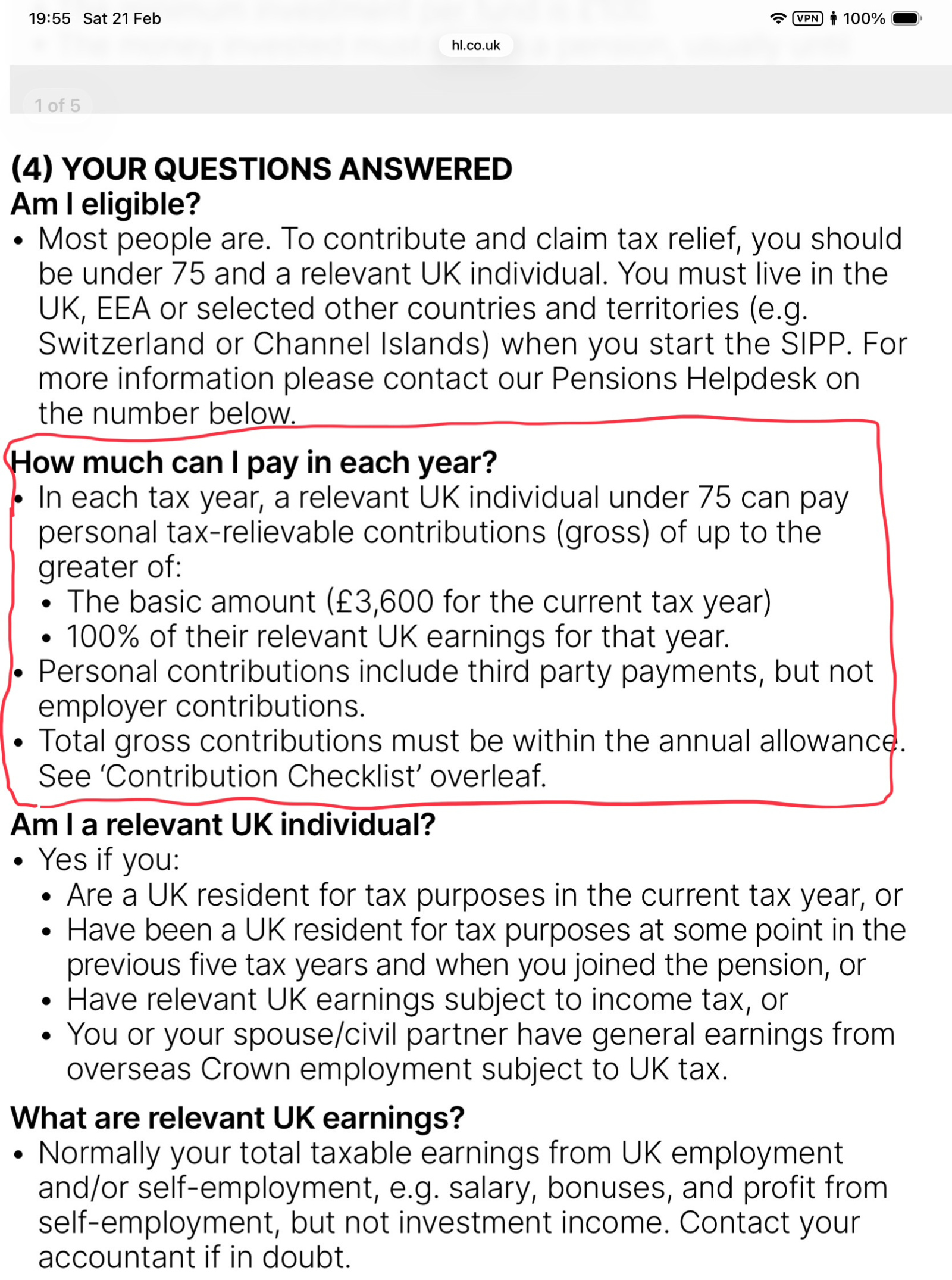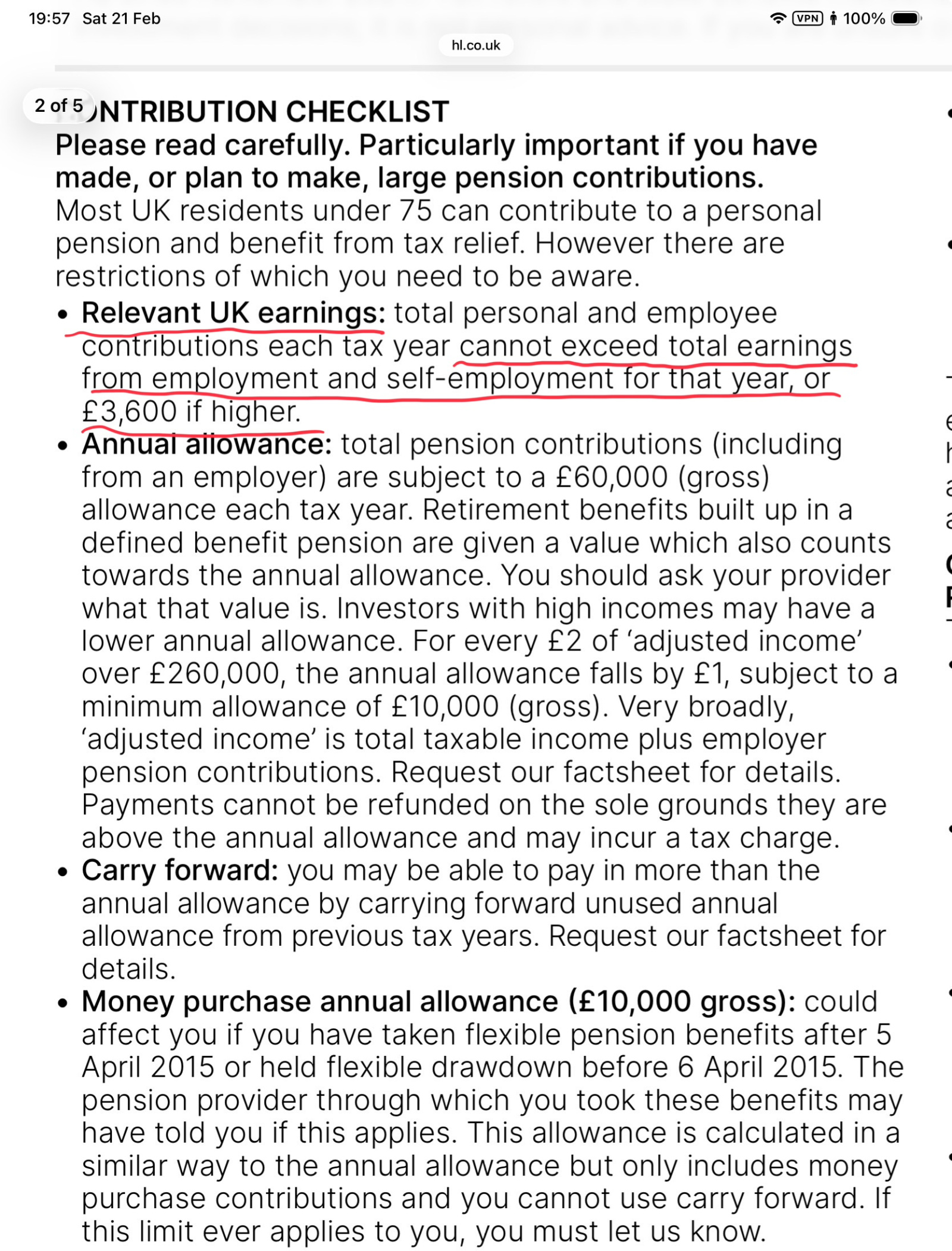 I should read all small print, I didn't. I also have a HL Drawdown pension I contributed to for thirty years. I assumed I would have no problems with a new SIPP and the box next to my accounts front screen said add up to £60k, so I did.