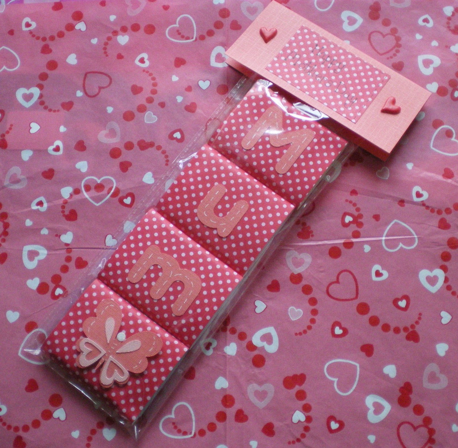 I have been making a few things this weekend so as i put them on my blog i'll post some pics here. I have been playing with a new cricut cartridge i got and wrapped some choccies for my mum..