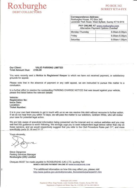 PS - Roxburghe's are currently being investigated by the Office of Fair Trading and been warned that their debt collection licence may be revoked.My very sincere apologies for those hoping to request off-board assistance but I am now so inundated with requests that in order to do justice to those "already in the system" I am no longer accepting PM's and am unlikely to do so for the foreseeable future (August 2016).