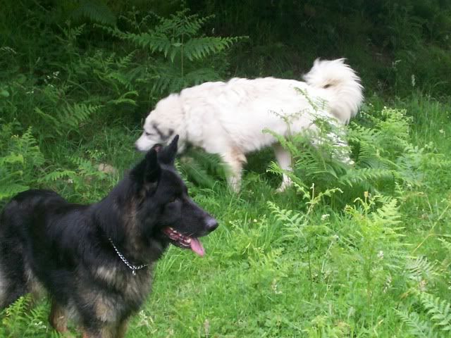 My cousin adopted a rescue girl GSD a couple of months back and she is the image of your two