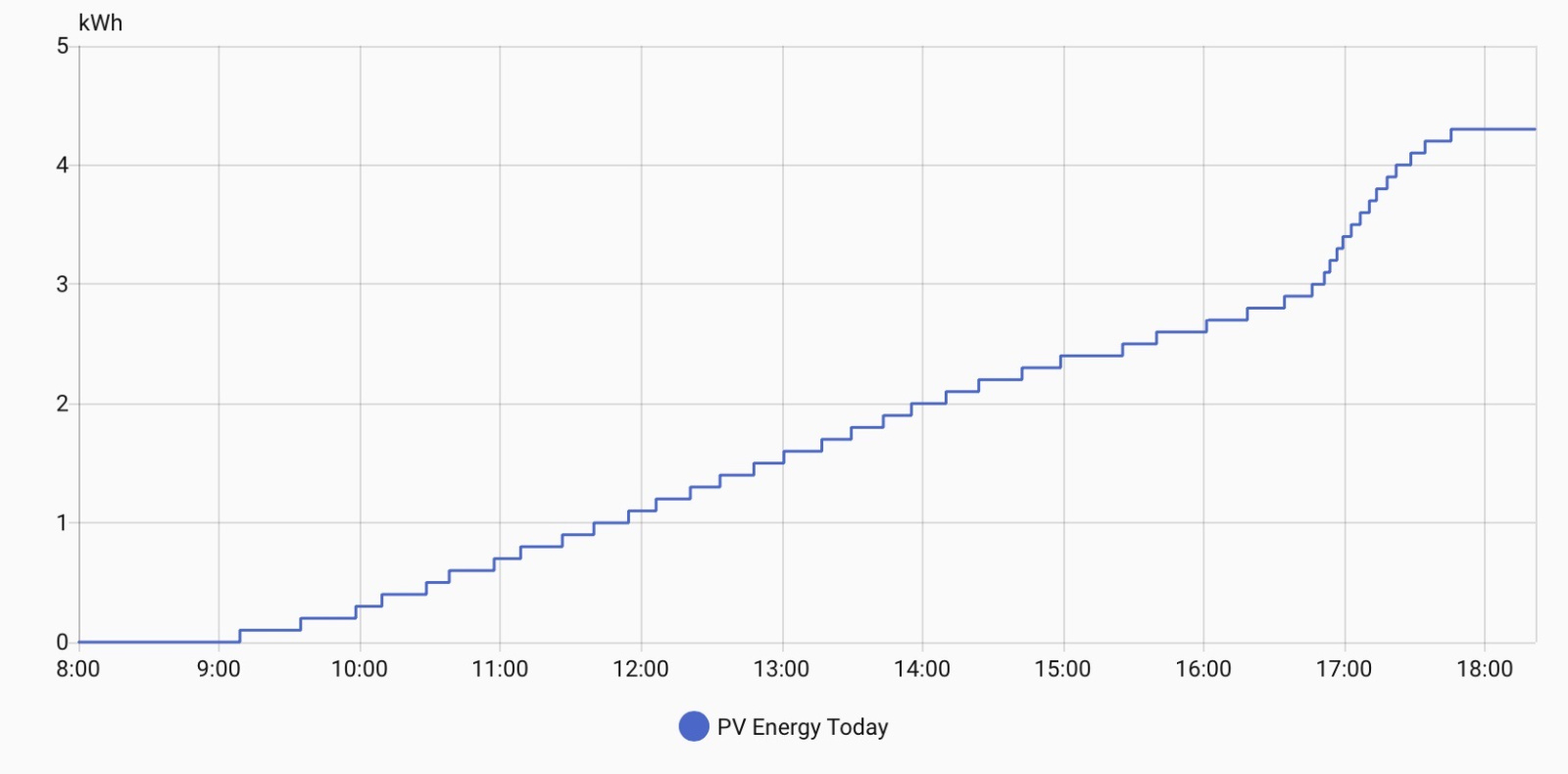 A few shadows cast, after lunch, but it didn't seem to be for long enough to pile on many kWh. I was right to treat the forecast of dawn to dusk sunshine with suspicion, though.9 -