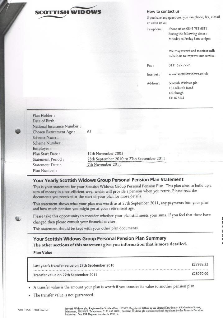 Here is my friend's annual statement that he received in September 2011 showing a statement of September 2010 to September 2011, showing a transfer value of £27858.56: