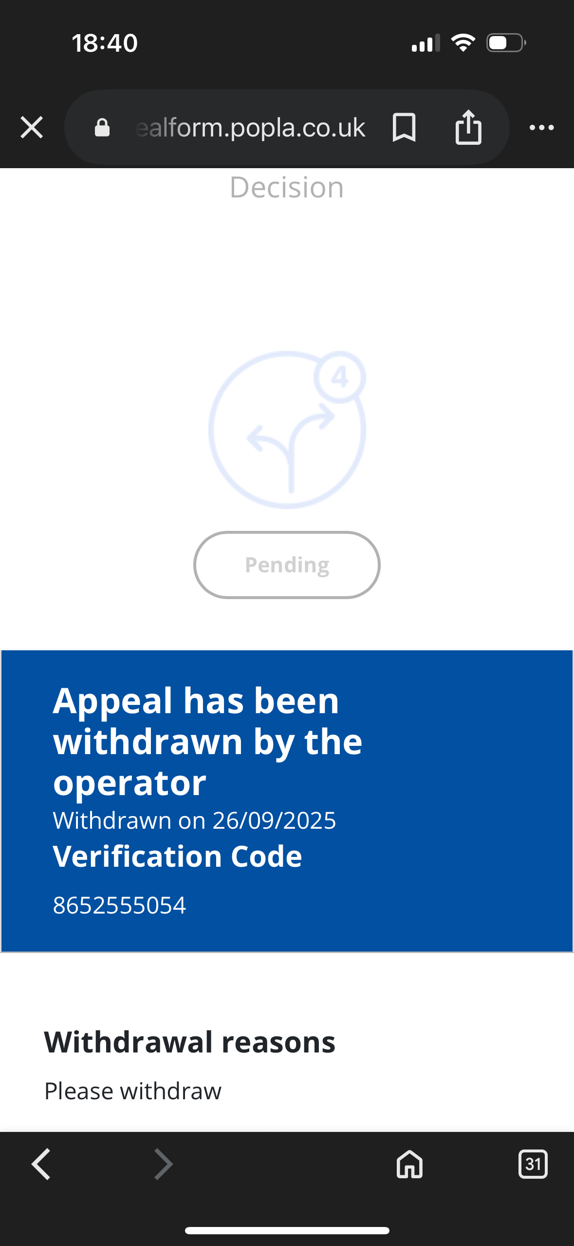 UKPC requested my appeal be withdrawn by Popla. Terrible signage, dark, poorly delineated spaces in residential parking.Was a bit horrified to get a notice tbh and neighbours got them for no reason!