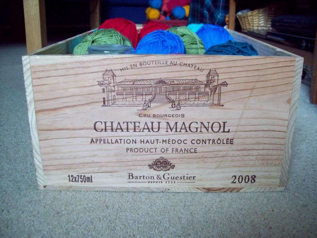but it was rough wood and had the wine info burned into it. More storage for my yarn YAY
