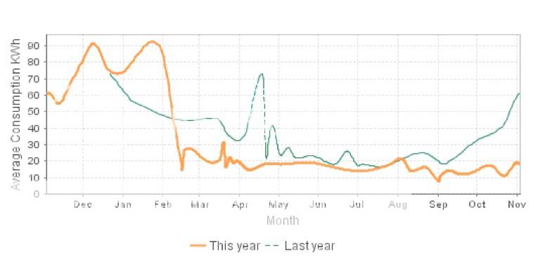 Here is your answer, look at the orange line. In the middle of February this year we had an oil boiler installed.