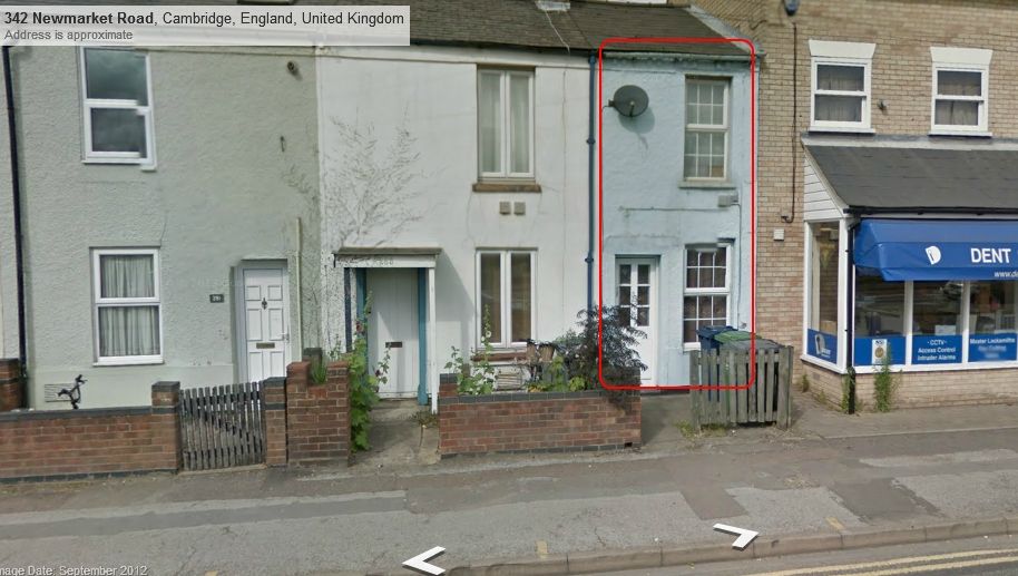 Here's a photo of that house - marked in red. http://i1366.photobucket.com/albums/r775/ephonepics/MSENP/285NewmarketRoadCB58JE_zps6d5901e9.jpg