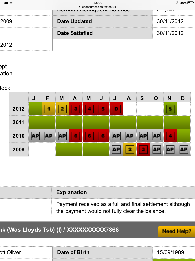Its difficult to say but your best bet is to complain to the creditor, stating that you believe your account defaulted around Dec 09 / Jan 2010, because you were not making the original contractual payments and you were in default of the account and ask them to update the date accordingly. If you had a payment plan in place there is a chance they can argue you never defaulted at that time it’s confusing as the file is marked AP in some places and then turns green was your account at this point brought back into full standing , what type of finance was it.0