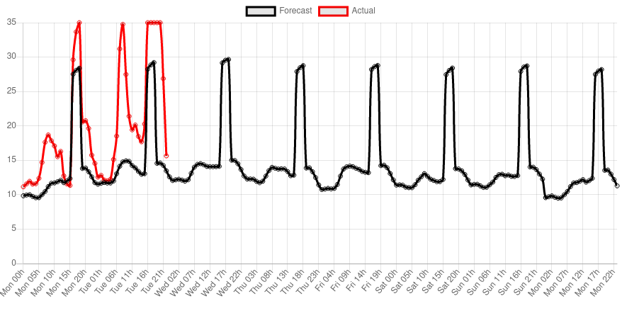 Telegraph_Sam said:Awesome. Is it possible to use any of Guy Lipman's extensive publications (or any other) to guesstimate price trends over the summer?Perhaps, but his prediction for tomorrow (black line) didn't fare very well against the actual price (red line):1