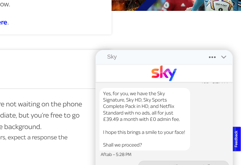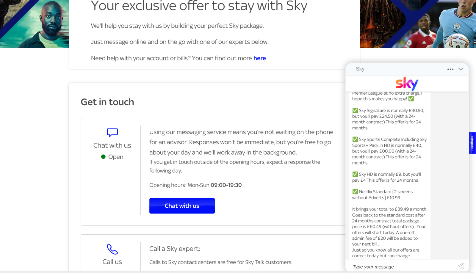 I've raised a complaint through https://www.sky.com/help/forms/complaints and provided multiple screenshots of the conversations but no idea what will happen.1 -