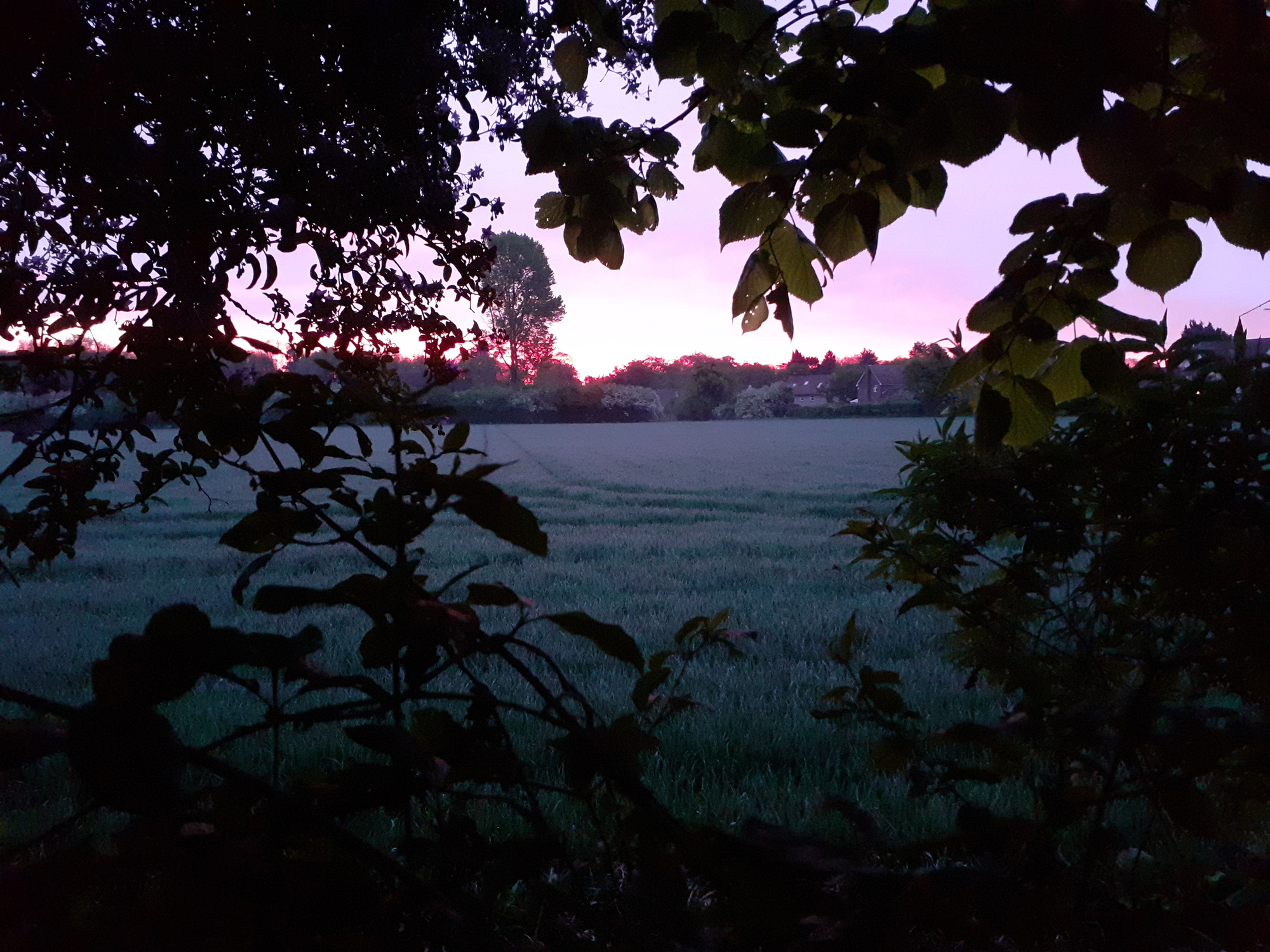 Hello. Just getting dark now at 9.45pm. Just been a last doggy walk as sun was setting, half moon in sky, a very bright Venus and a blackbird singing on the point of my eaves. Lovely.