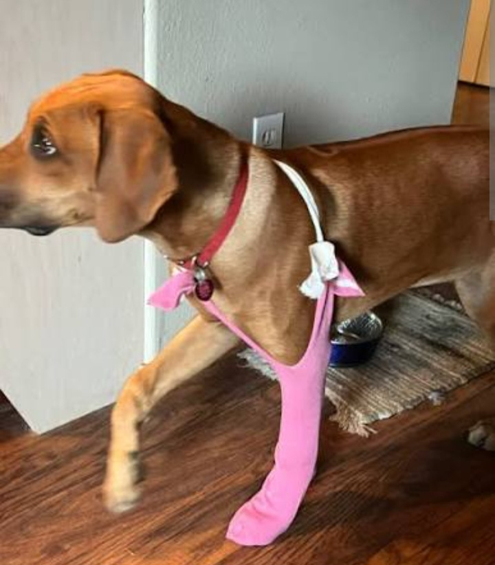 Oh good news about Stinky not needing a dressing anymore. I was just about to suggest a makeshift item like this to put over the top and stop him chewing it. Saw it on a Facebook page a while ago and only just thought about it again. The one I saw on Facebook had used some super thick tights 🤣