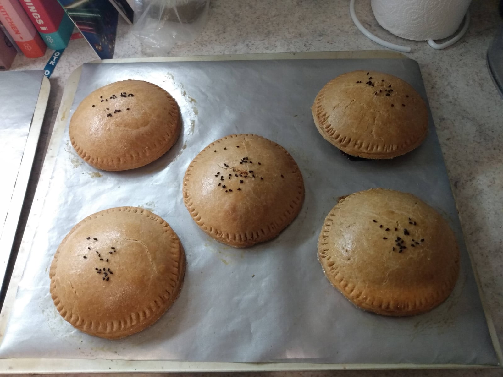 The recipe said it would make 6 but after I'd rolled out my pastry for the first time I found it would easily give me 9 of the circle size they specified, plus there would be a lot to reroll, so I ended up cutting out enough to make 6 with 1 circle on the bottom and another on the top and still had enough pastry and filling left over to make a one crust pie in a 7 cm pie plate.