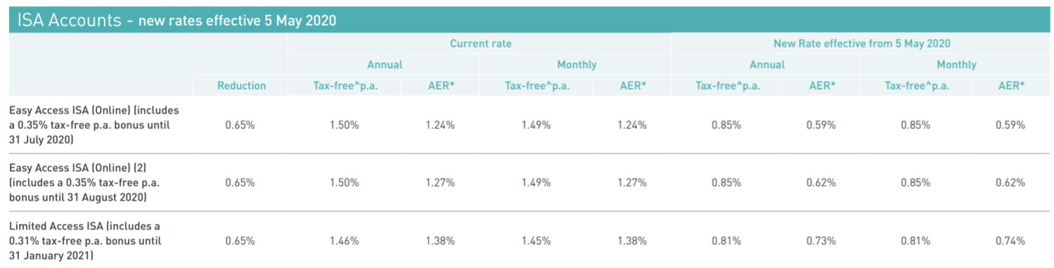 Thanks for posting that Colsten. I was surprised when the 1.5 easy access ISA was not included in the original announcement and held out the hope that they would not change it until the bonus period is over. Seems another one bites the dust and now I have to hope I am not too late to get it moved to the virgin 1yr fix I opened last month0
