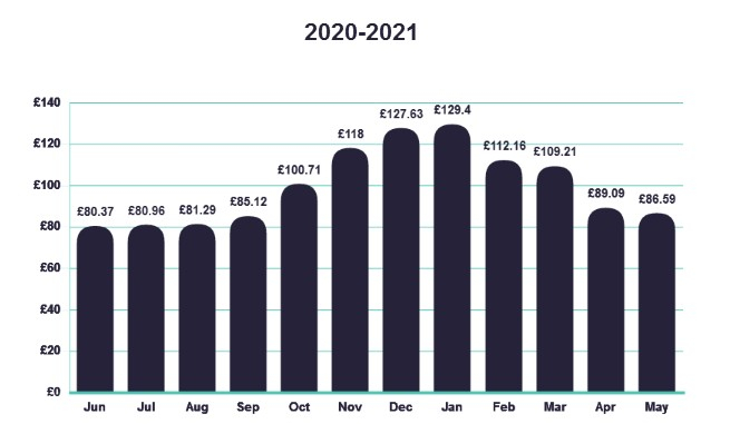 To make things simple for everyone, I generated this graph using the Symbio website based on an EAC of £1200, so an average monthly payment (EAC/12) of £100.