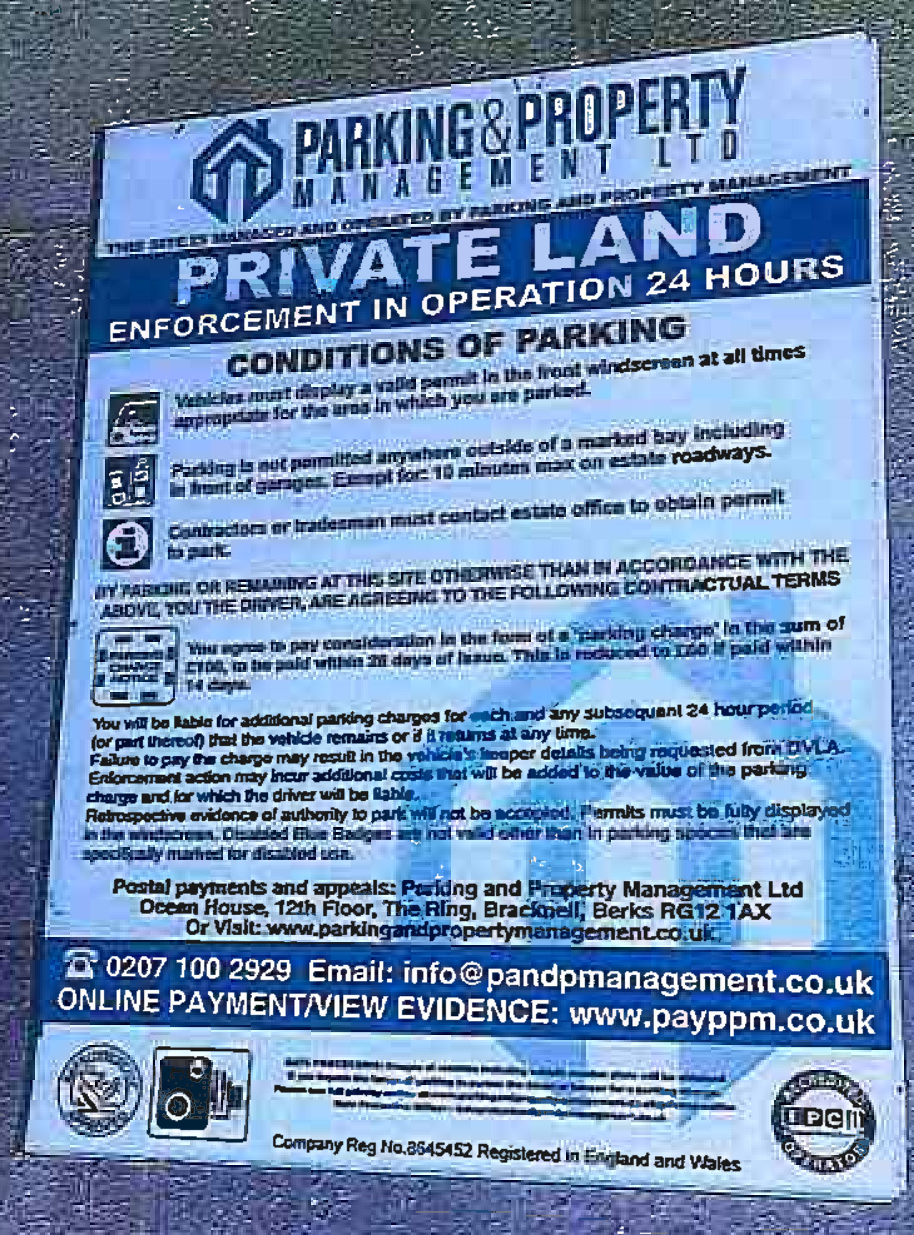 She doesn't comment on the site at all or AFAIK the actual contract with the parking company. She refers to various cases but disregards the obvious point - this is not a commercial car park, it's your home. You don't have a choice of somewhere else to park.
