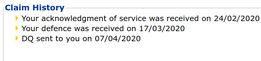 I am wondering when the claimant will send their DQ. Below is the current history from the MCOL website:I sent mine back on 24th April. What's their deadline to proceed with their claim to a local court?0