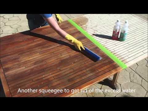 What I do with the boat's teak, and plan to do with my furniture is clean it with one of the many teak cleaning products that you can buy in yacht chandlers. Some are in two parts - a cleaner and a brightener.