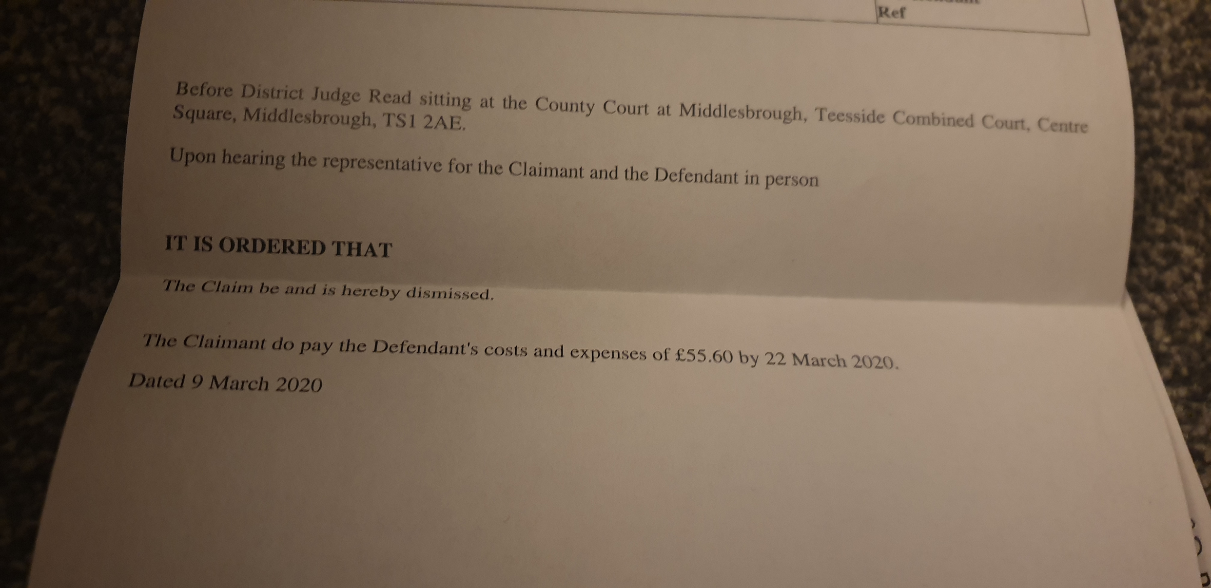 The judge heard my case and found in my favour and awarded me my costs.