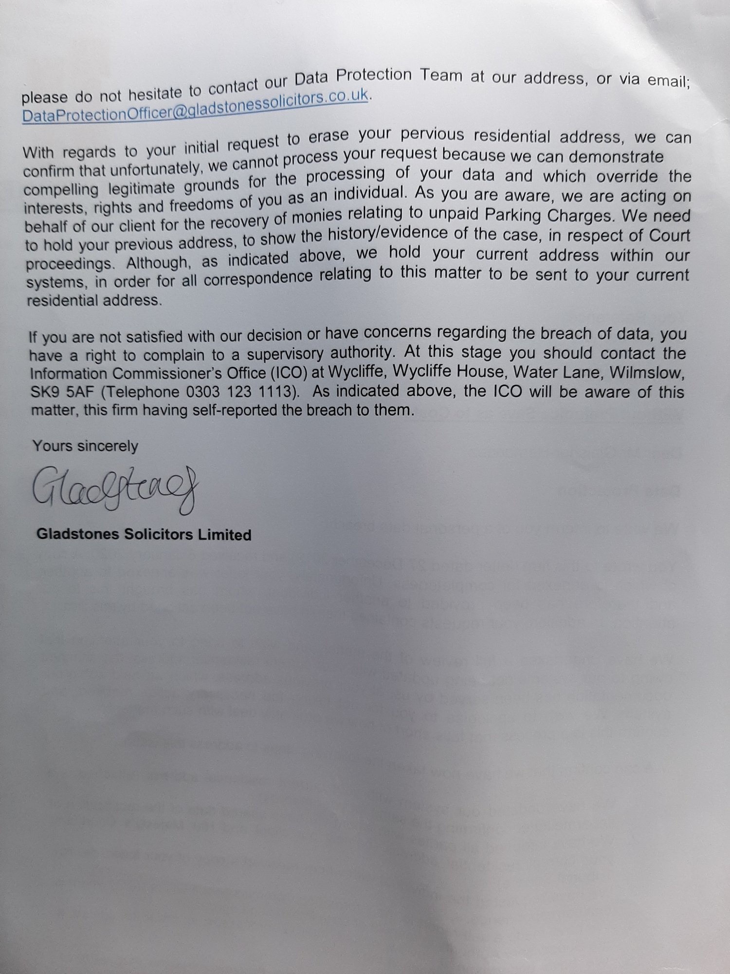 So the OP should immediately report Gladstones to the ICO and the SRA as a formal complaint about their handling of his/her data which has prejudiced the case, and then send a copy of those reports to DJ Iyer and Gladstones' letter and state that you wish for this to be added to the court file because it is part and parcel of a course of conduct of unreasonable conduct by this Claimant and their solicitors.