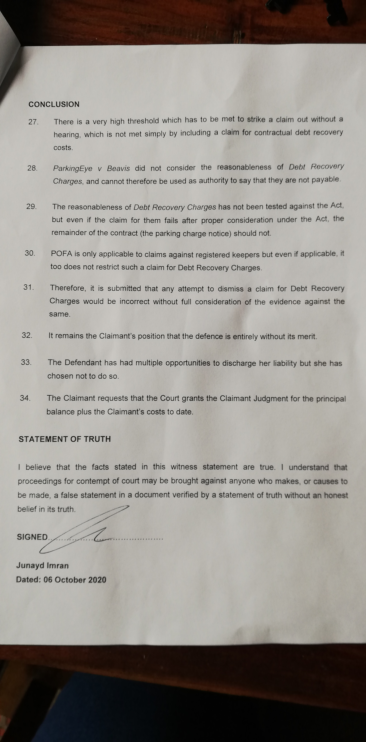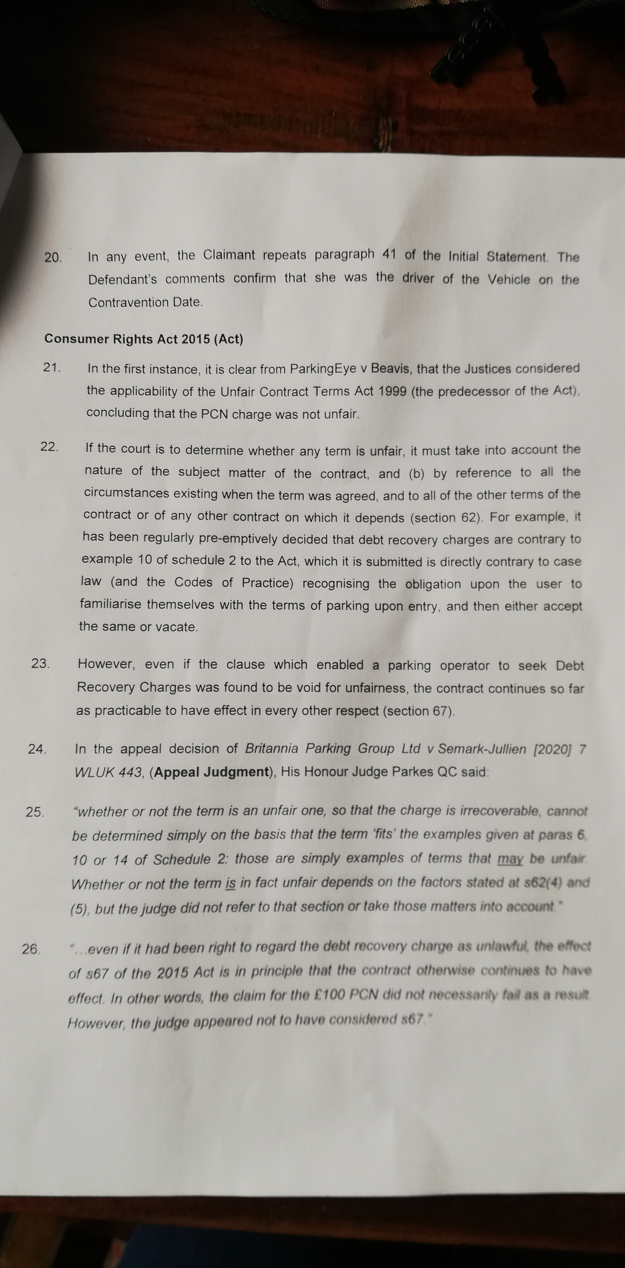 Too many people are expecting the £60 to get a case struck out and dismissed , that won't happen , the judges will consider the merits of the core terms of the case and make a judgment one way or the other