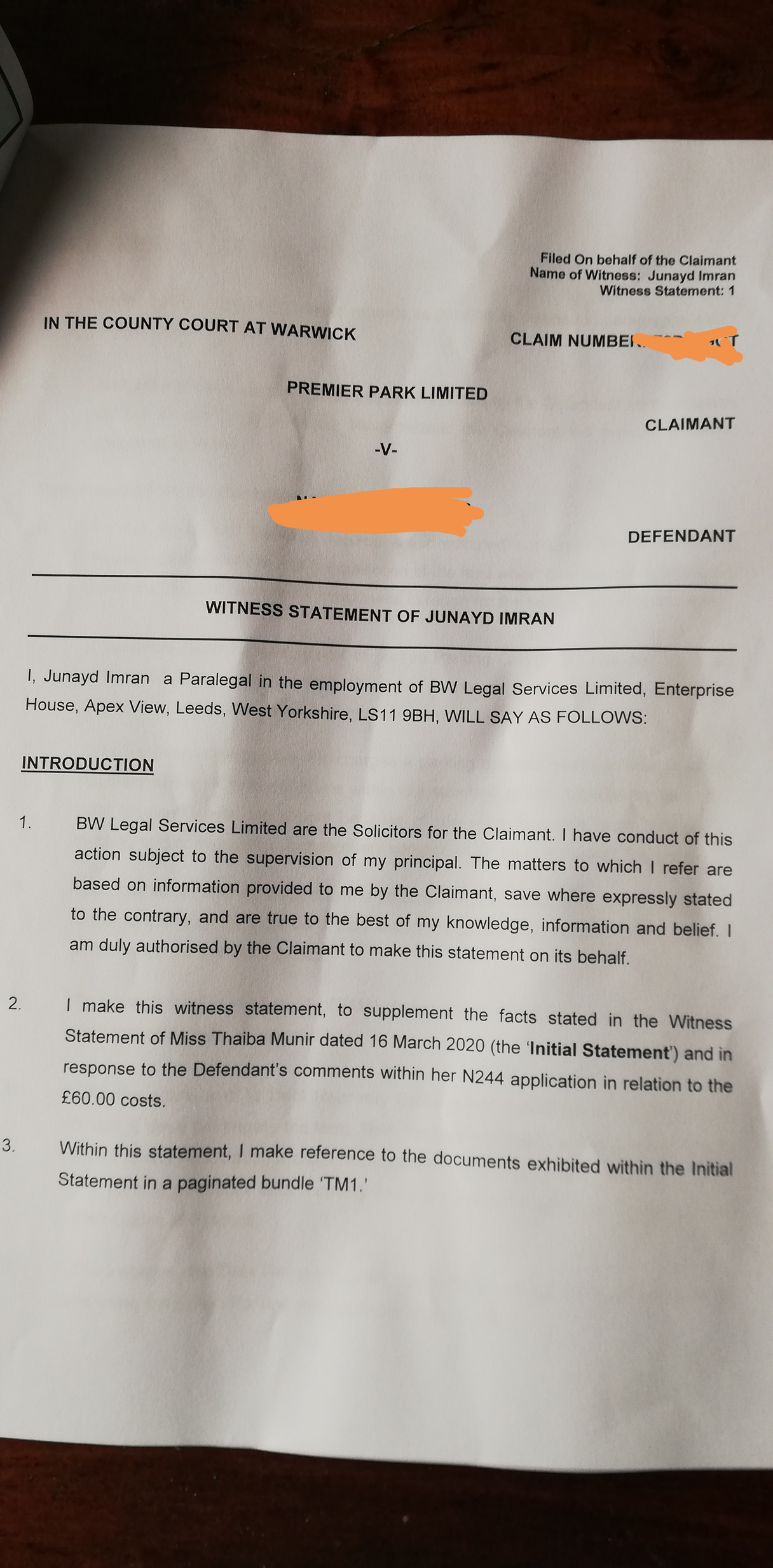 okay so I received the following supplementary witness statement in the post today stating that their client won't be in attendance and an advocate will represent then.