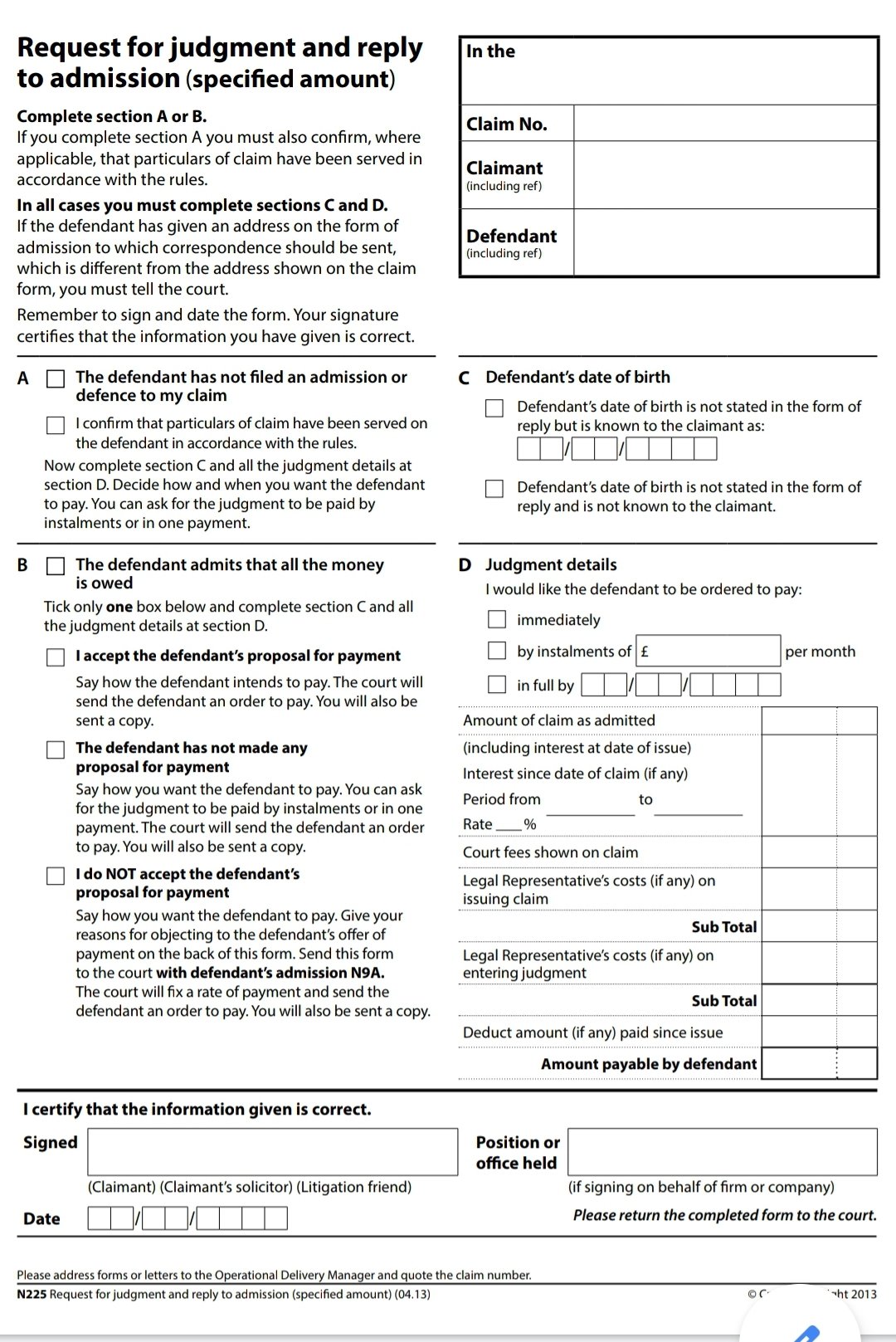 Not sure if i should note the defendant as claimant here?? because if i list as the defendant then i can't tick the first box in section A.
