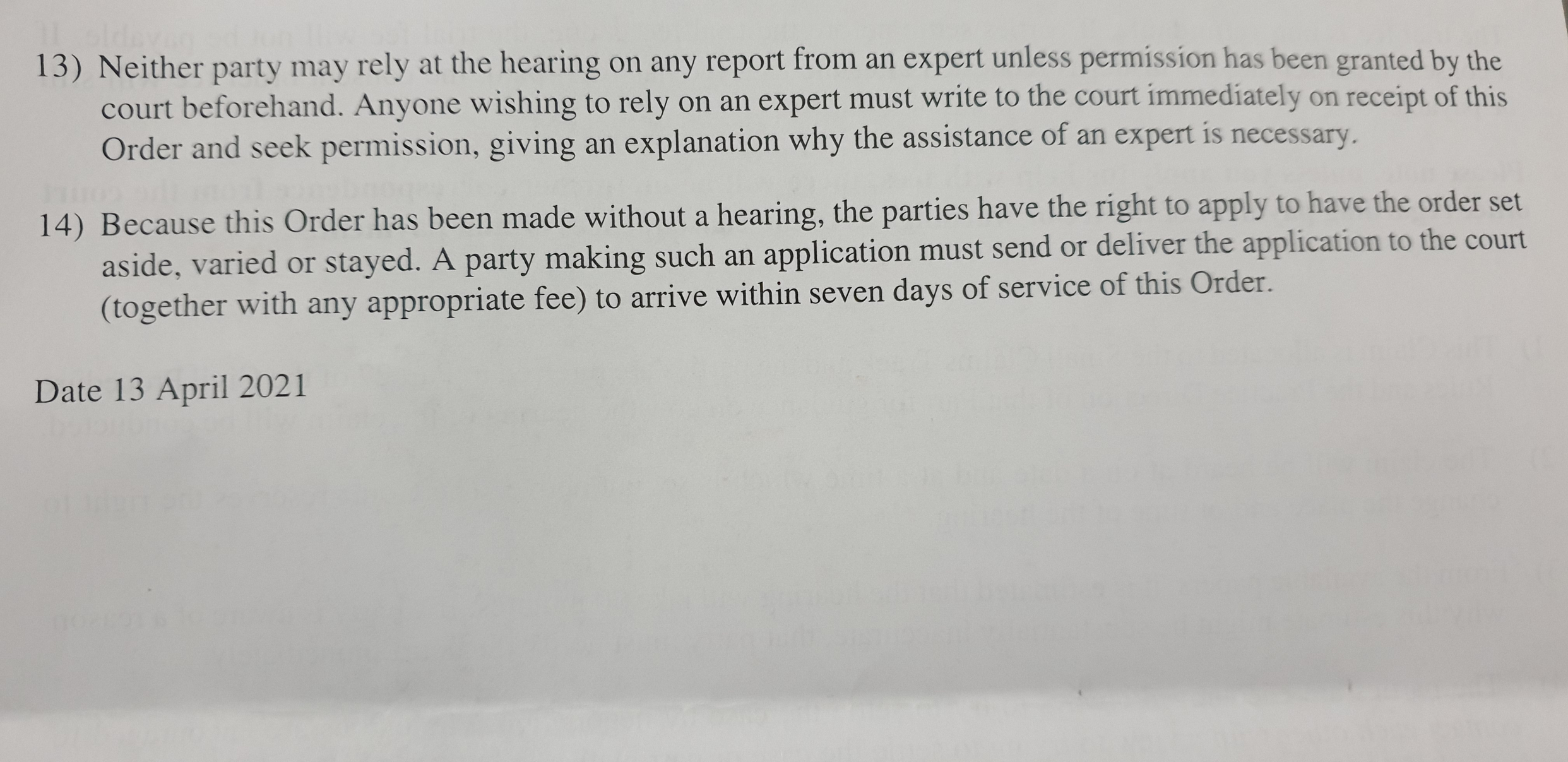 I only received this letter today and thinking about applying to have the order set aside as stated in the above paragraph 14. But the 7th day is tomorrow. Anyone know what this is exactly, costs and process?Please note, we are not a legal advice forum. I personally don't get involved in critiquing court case Defences/Witness Statements, so unable to help on that front. Please don't ask. .