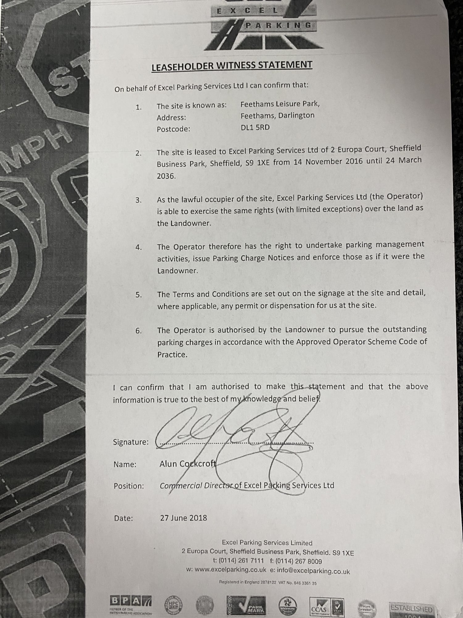 Excel Parking Services LTD (Claimant)