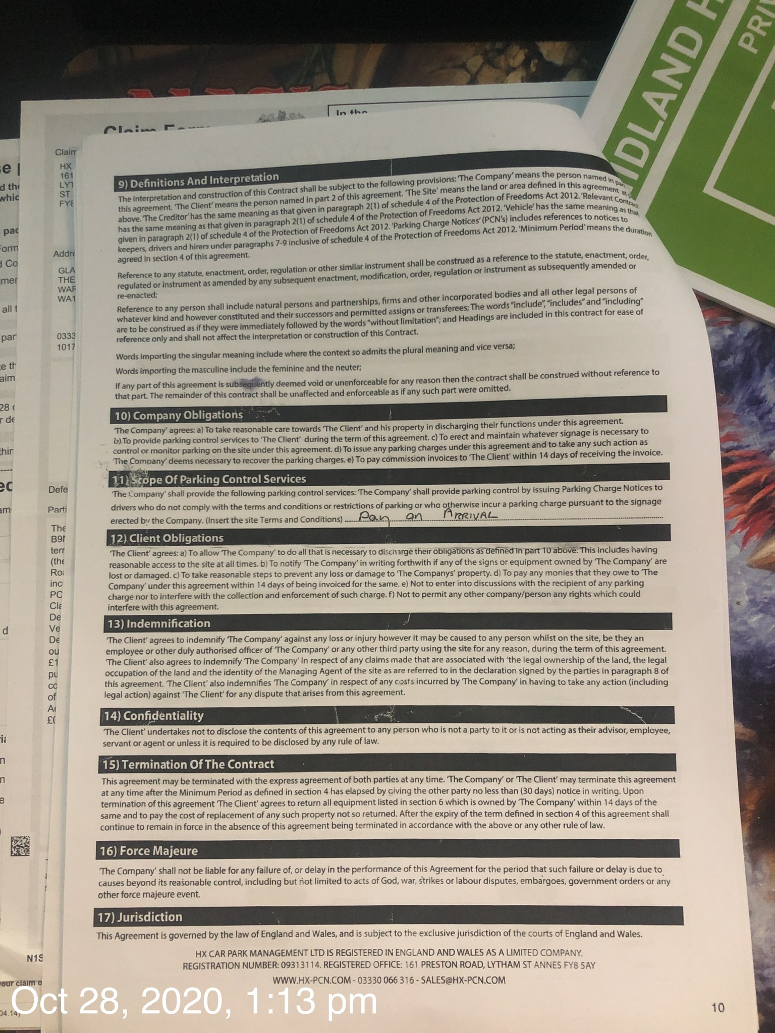 15. The Claimant has appended a redacted ‘landowner contract’ which has little or no probative value and which offends against the rules of evidence. There is nothing to say what the landowner's approach (whoever they may be) is to penalising genuine patrons who pay, and even the signatories could be anyone (even a stranger to the land?). It is clear that two Directors have not signed this contract for either party, contrary to the Companies Act. The network of contracts are key in these cases, since the parking charges are argued to be contractual and the authority to sue visitors must flow from the landowner, not an agent.