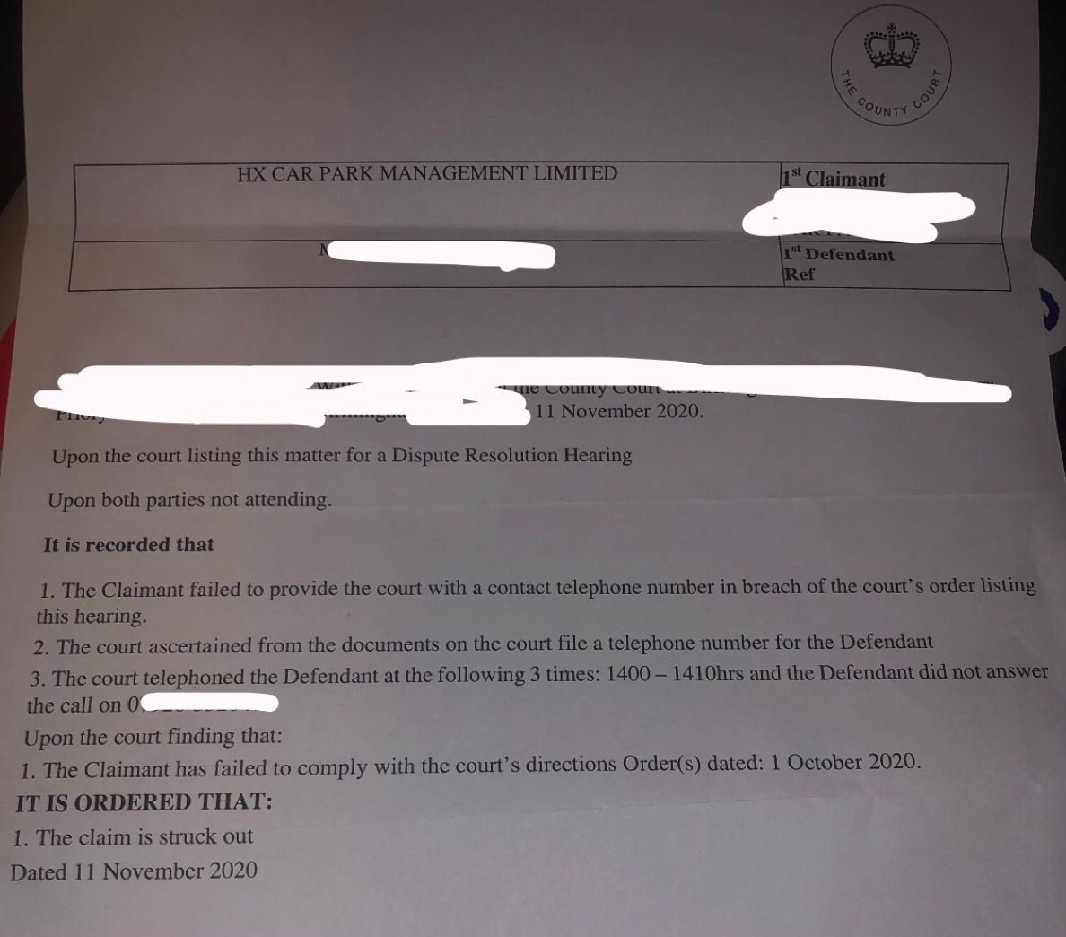 You won - and you are probably safe from them objecting to this Order because they didn't provide a phone number. It wasn't just that they couldn't be reached, so they broke the terms of the previous Order.PRIVATE 'PCN'? DON'T PAY BUT DON'T IGNORE IT (except N.Ireland).