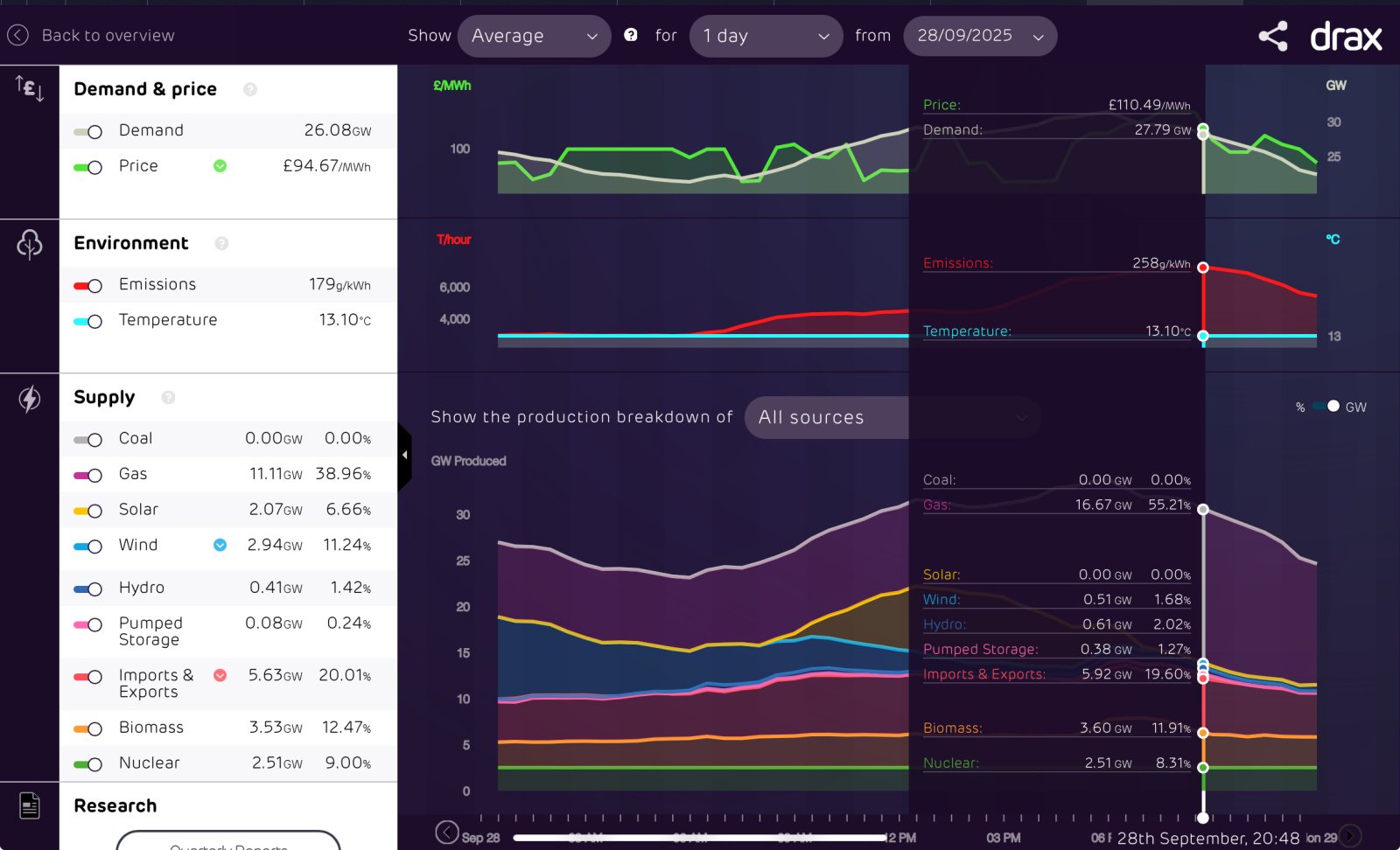 michaels said:JKenH said:For 12 hours overnight, approx 7am to 7pm, on 28th/29th September renewables contributed 2GW or less of generation, the low point being just 0.51 GW.Northern Lincolnshire. 7.8 kWp system, (4.2 kw west facing panels , 3.6 kw east facing), Solis inverters, Solar IBoost water heater, Mitsubishi SRK35ZS-S and SRK20ZS-S Wall Mounted Inverter Heat Pumps, ex Nissan Leaf owner)0