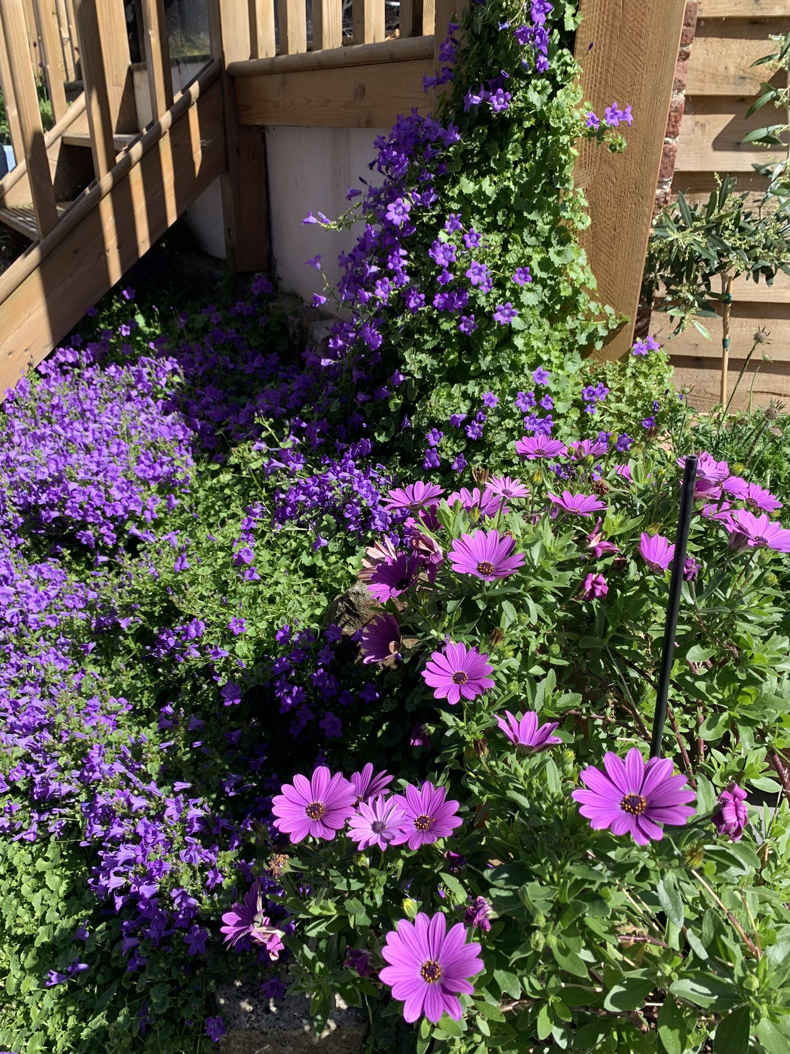 Lovely weekend played in a club match yesterday we drew but our team won overall. Nice meal afterwards and got invited to play at another club in August.Got so much social stuff coming up it's crazy. Friends staying next weekend and DDs cousin arriving from the states staying for a week. Then the following weekend golf and two more friends over. After that a break until my niece is over in July. Still need to book the flights back.Been gardening properly today main at the front here is the back in all is purple splendour.