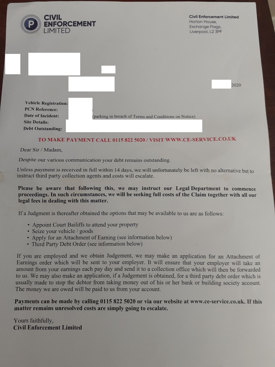 Parliament is well aware of the MO of these private parking companies, many of whom are former clampers, and on 15th March 2019 a Bill was enacted to curb the excesses of these shysters. Codes of Practice are being drawn up, an independent appeals service will be set up, and access to the DVLA's date base more rigorously policed, persistent offenders denied access to the DVLA database and unable to operate.