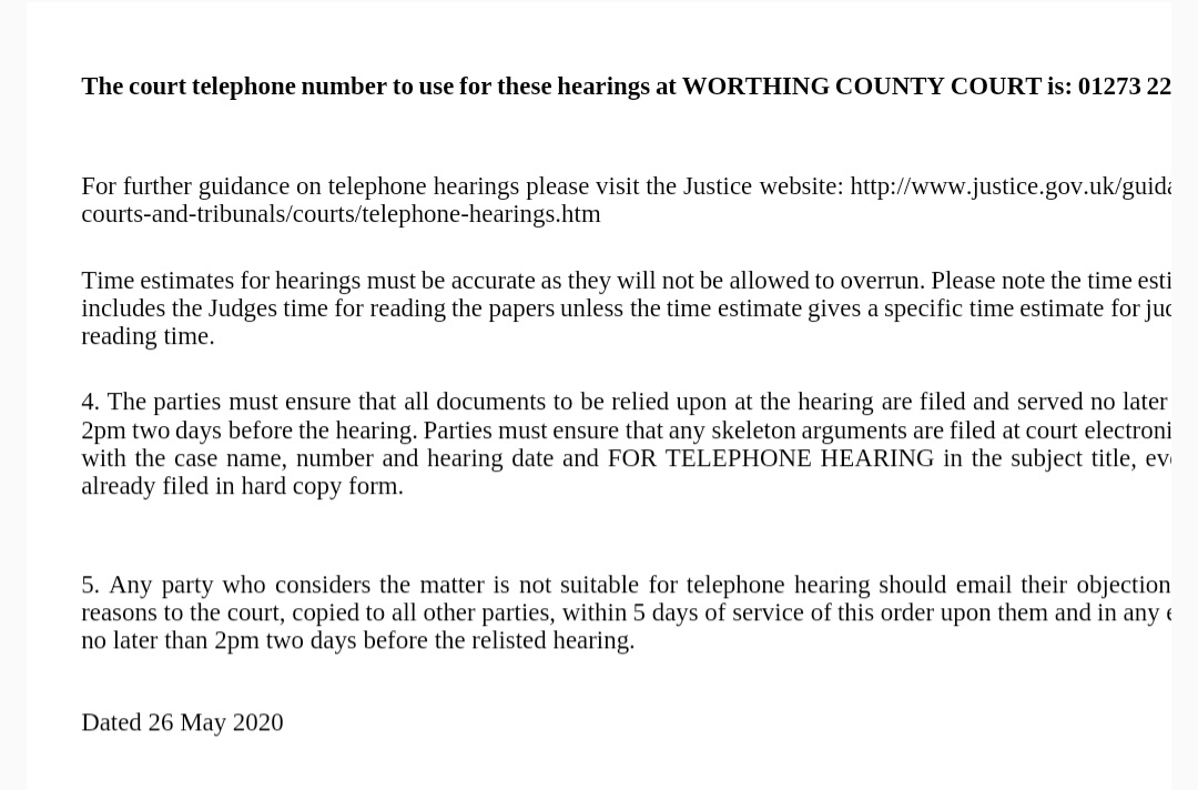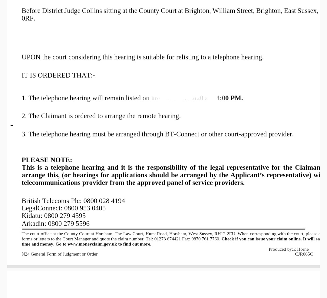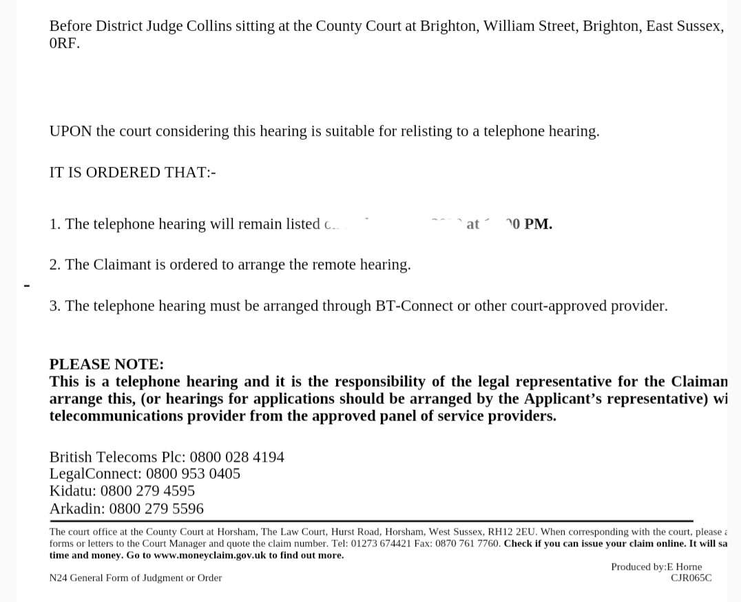 Just recieved mail today from court about a telephone hearing for this case. Not to confidant about the phone hearing because i think it will give an advantage to the claimant and to be honest was hopping that the claimant rep won't turn up to court if it was a physical hearing .