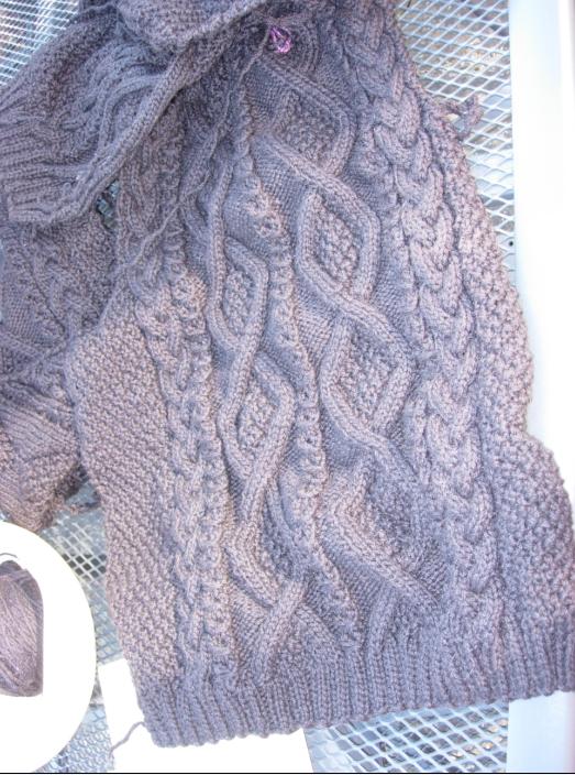 A few years ago (2008), I frogged the first jumper and knitted the cardigan that I'm wearing today, the Must Have Cardigan designed by Patons. Here's a close-up: