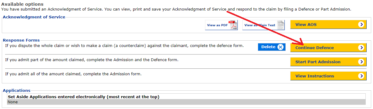 As you know I have already done AOS and I sent the letter to the company but I haven't done the Defence. Did you see the screenshot that I have attached?