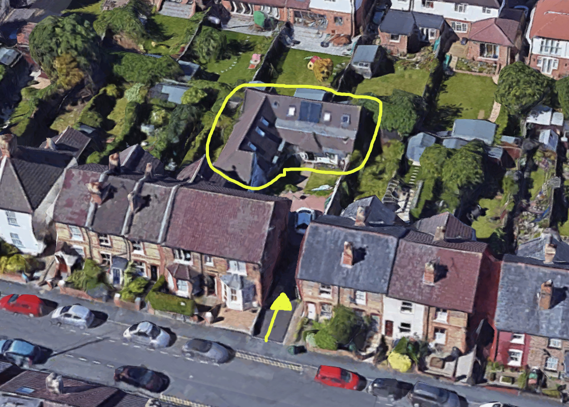 It was an office which was given planning permission to be changed to a 2 bedroom house in 2011 and it's effectively in amongst neighbours gardens and also has access to 1 parking permit.