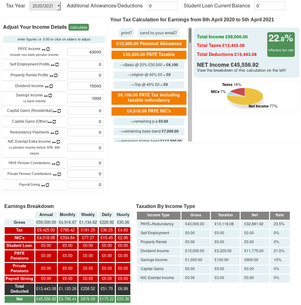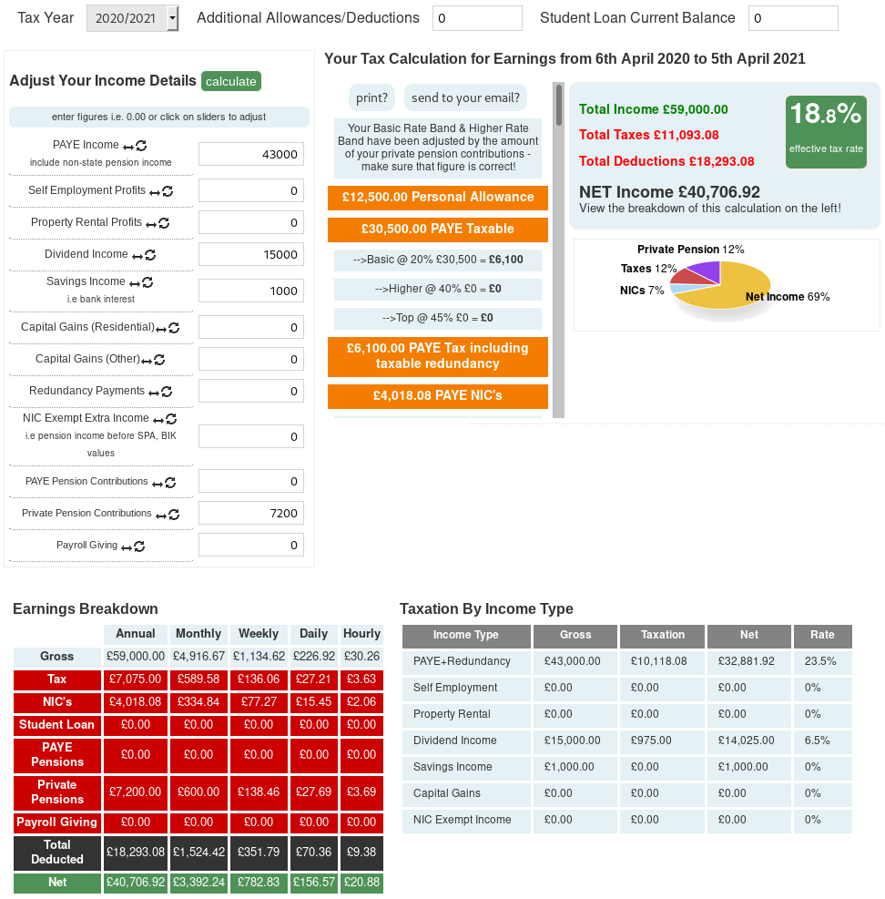 You could play with some online tools, like this one: https://www.uktaxcalculators.co.uk/wizard (you can make up a name and an email address to use the tool, they won't check those details).C_Mababejive said:Thats it exactly Mr Saver,,,if i can contribute to my SIPP then not only am i making an instant gain by putting money in my sipp but if i do my sums right (the main reason for the post!),then i ensure that any overflow of dividends in excess of the dividend nil rate band is only taxed at the lower rtae of 7% AND i retain the ful nil rate personal savings allowance.As im rubbish at maths a nice little spreadsheet or similar would be good to just slot in figures..