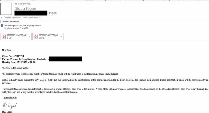 Not sure if I am reading this right but looks like some serious misleading going on by BWLegal as they showed a photo with 15:58 on claiming that was when it was sent (see below). Their sent box perhaps shows a different story.
