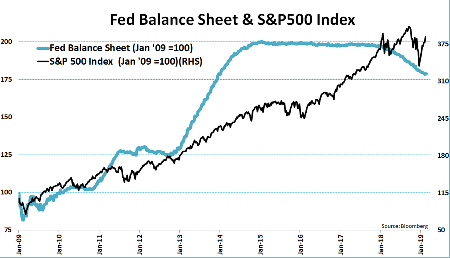 I note the stocks' y-axis scale is 1/10 of the Balance sheet one, and neither begin at zero. It looks nice, but its "presentational', rather than 'mathematica'l IMO.