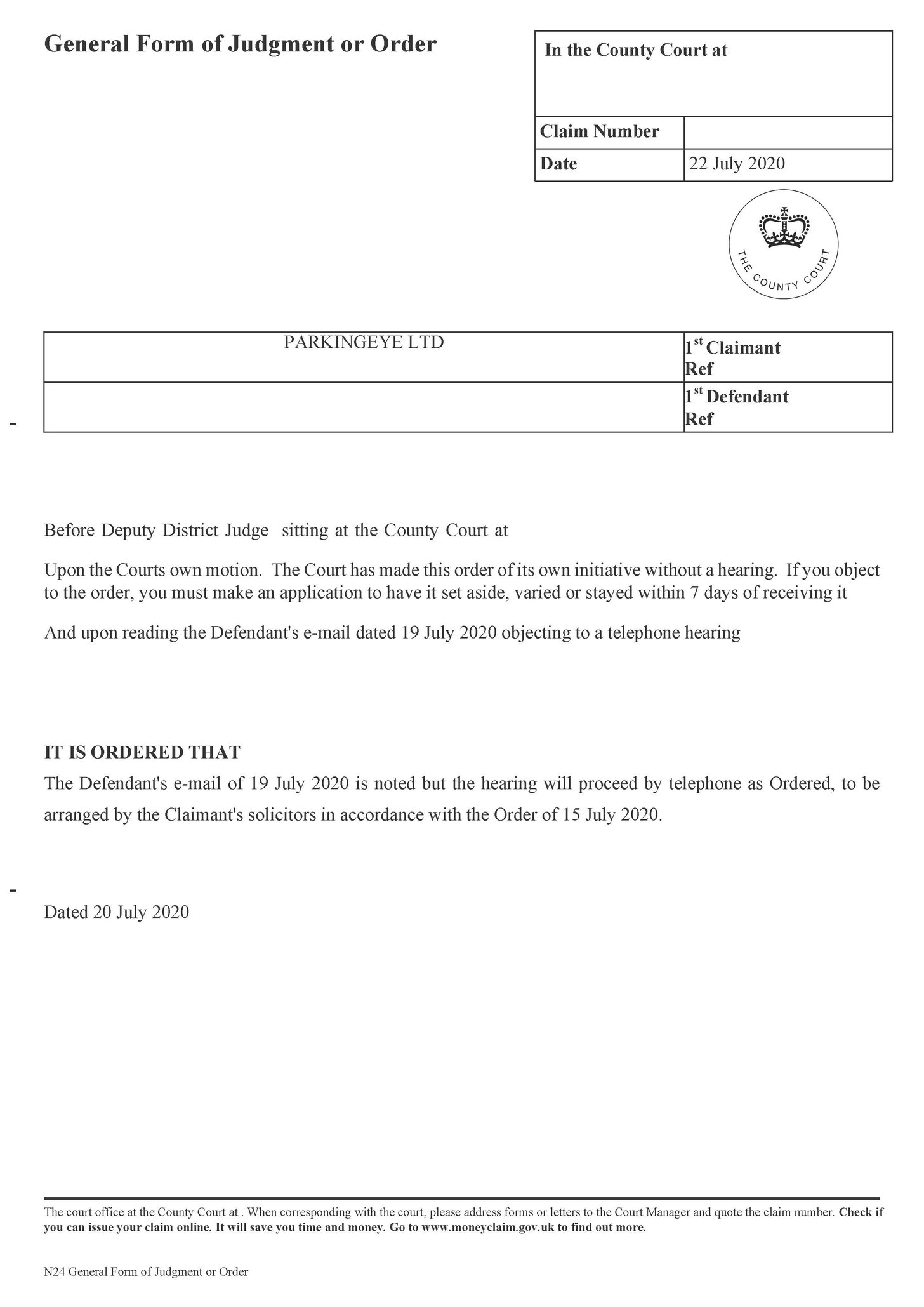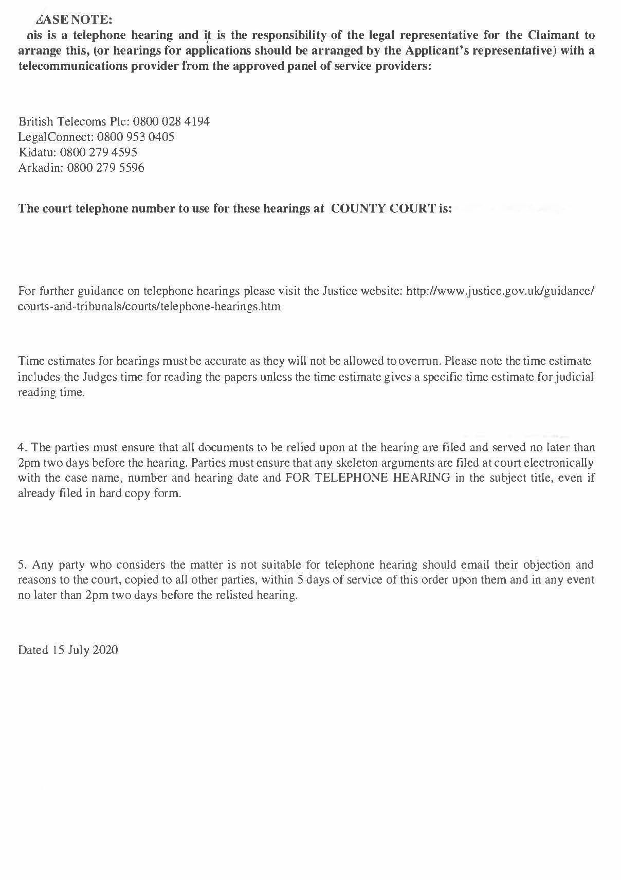 In the morning I've received Court Order to proceed as normal despite my objection to telephone hearing. I was disappointed
