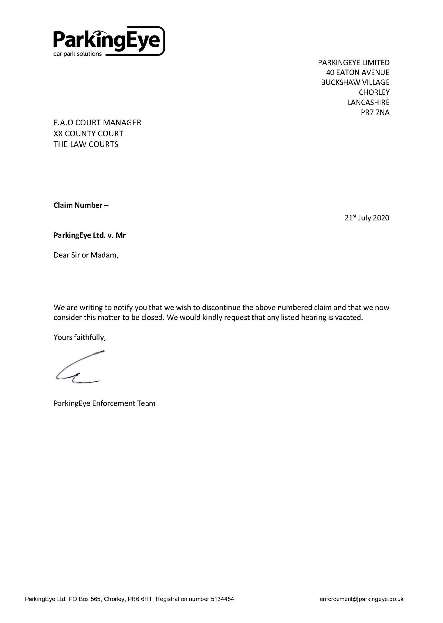 Today I have received court letter for telephone hearing.I noticed that the covering email by Coupon-mad here is not suitable for ParkingEye cases.